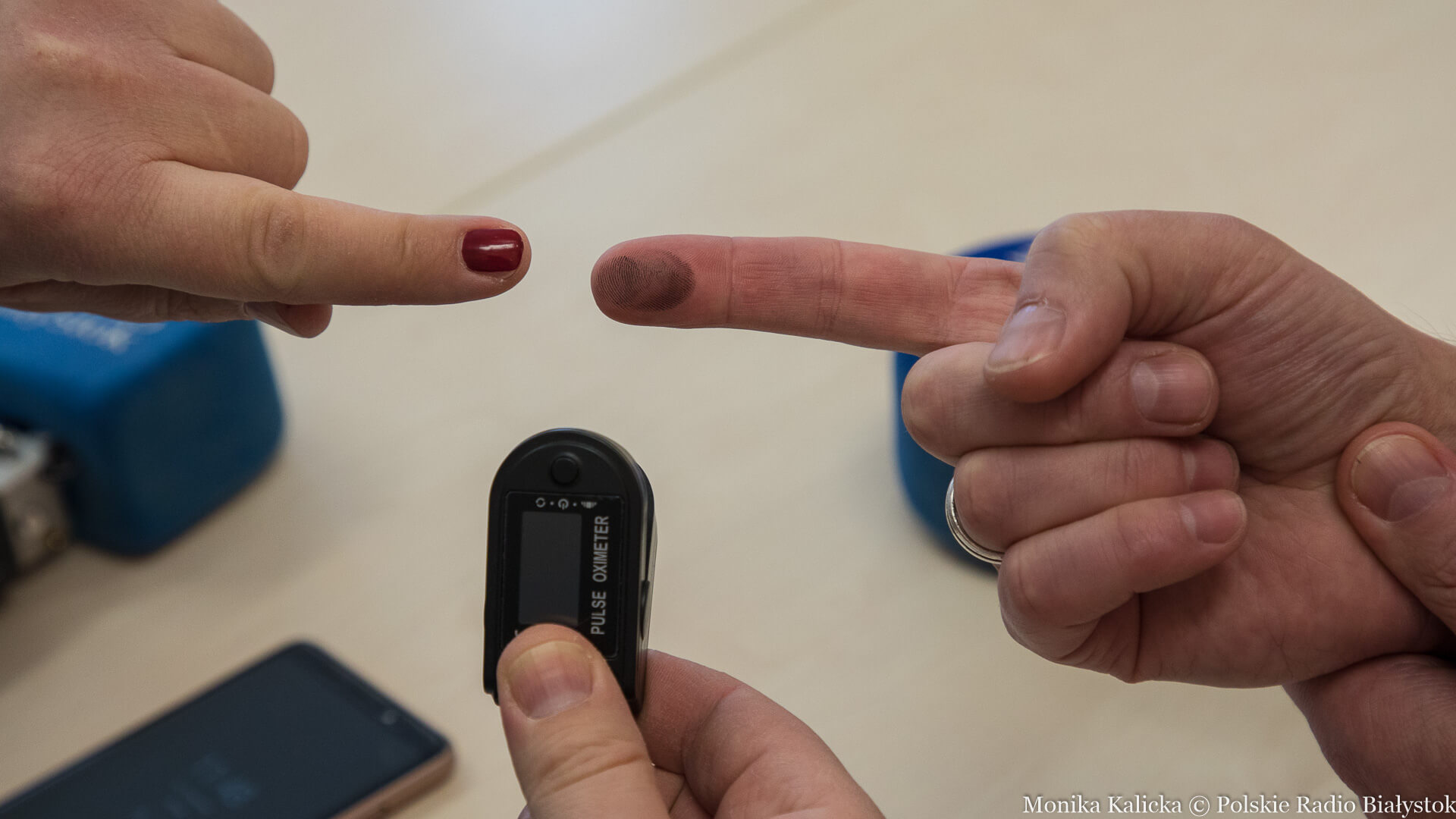 Radio Białystok | Galerie | Galerie - Jak działa pulsoksymetr? - eksperyment Kamila Kalickiego i Andrzeja Ryczkowskiego [zdjęcia]