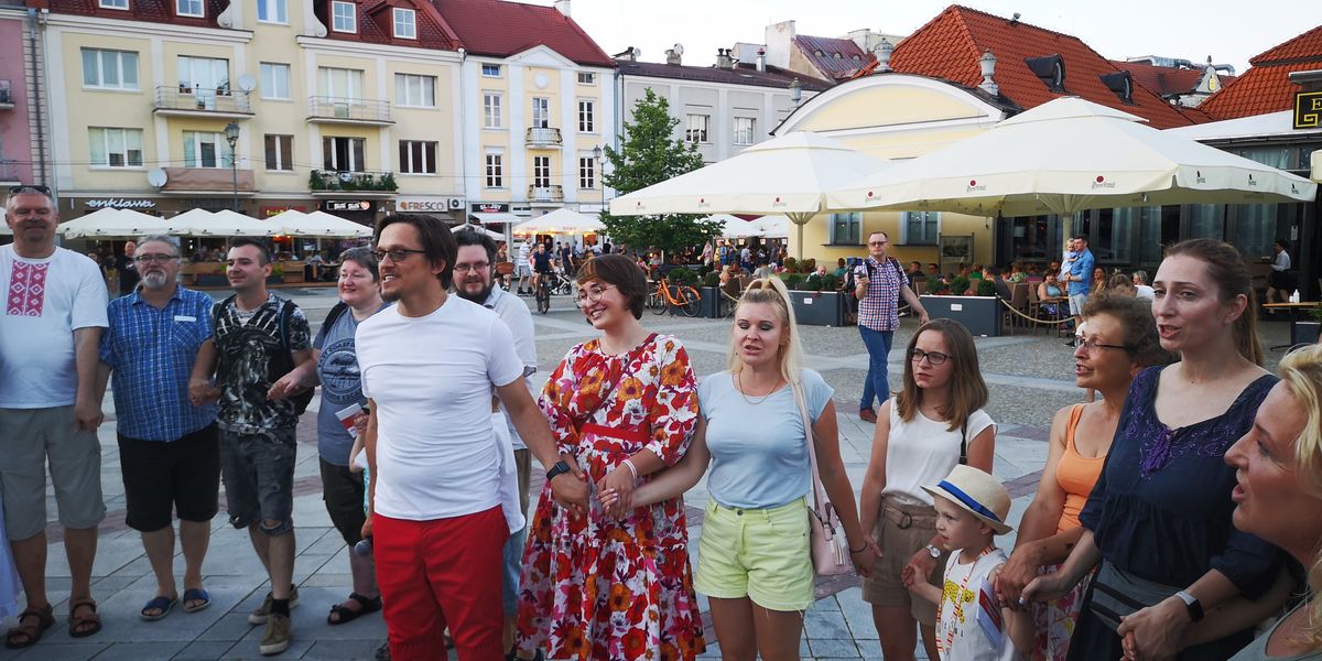 „Kupalinka”, „Hraj”, „Try czarapachi” i „Prostyja słowy” – białoruskie pieśni zabrzmiały na Rynku Kościuszki w Białymstoku. Doskonała pogoda sprzyjała wspólnemu śpiewaniu, które poprowadził Siarhiej Douhuszau – białoruski muzyk obecnie przebywający na emigracji w Polsce, inicjator projektu „Śpiewny schod”, podczas którego można zaśpiewać znane i nauczyć się nowych białoruskich piosenek. Jednak dziś ten projekt ma też szersze znaczenie – zwraca uwagę mieszkańców różnych miast na represje wobec białoruskiej kultury. W audycji „Pad znakam Pahoni” relacja ze „Śpiewnego schodu” w Białymstoku, który odbył się w ramach Międzynarodowego Tygodnia Kultury Białoruskiej.