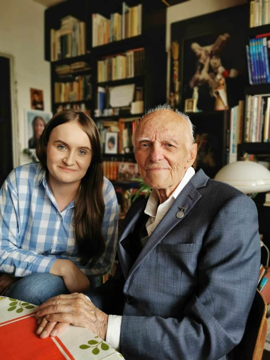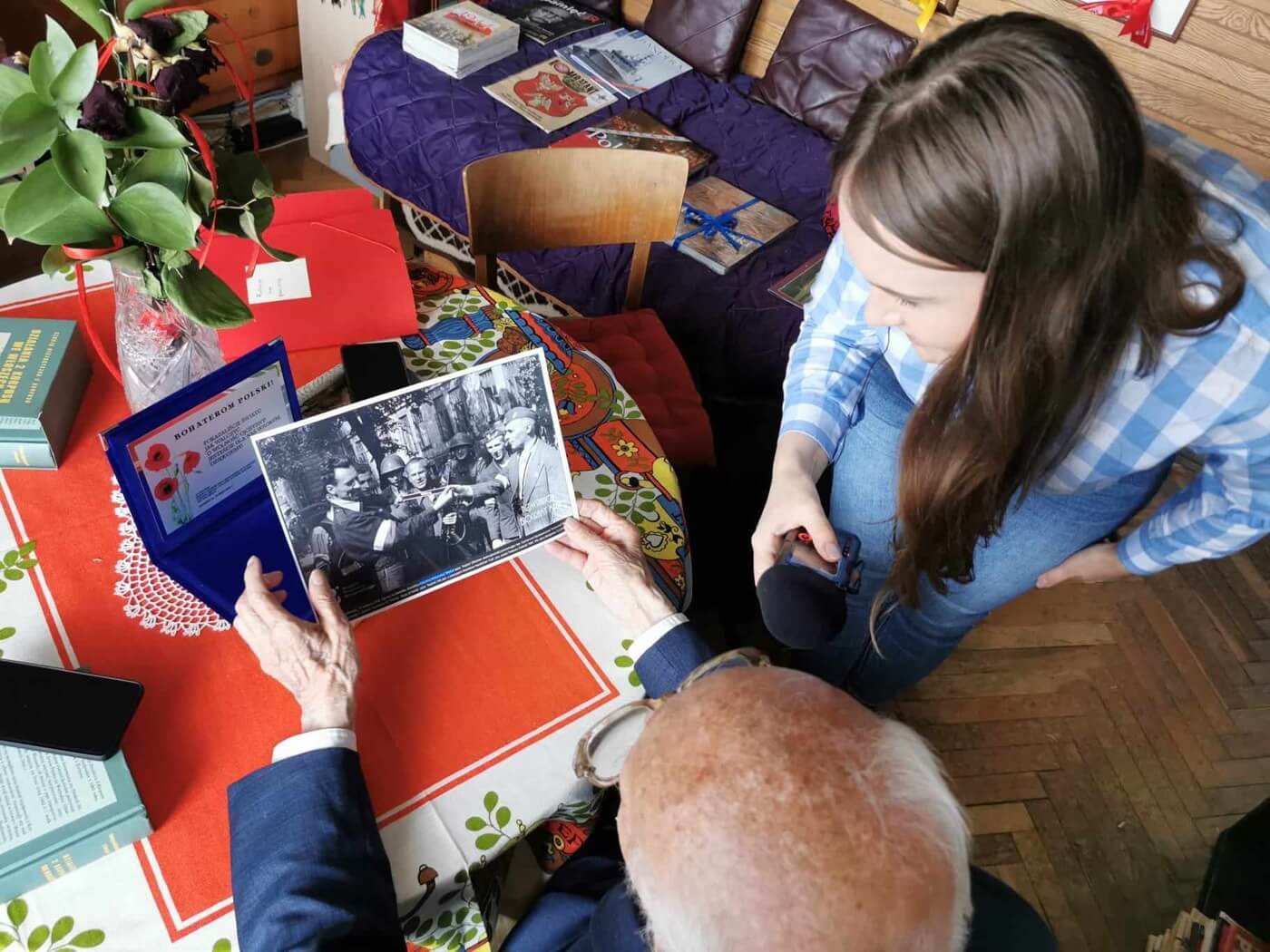 Wioleta Wróbel podczas spotkania z prof. Jerzym Grzywaczem ps. "Tapir", powstańcem warszawskim, Sopot, 24 maja 2024 r., źródło: zbiory Wiolety Wróbel