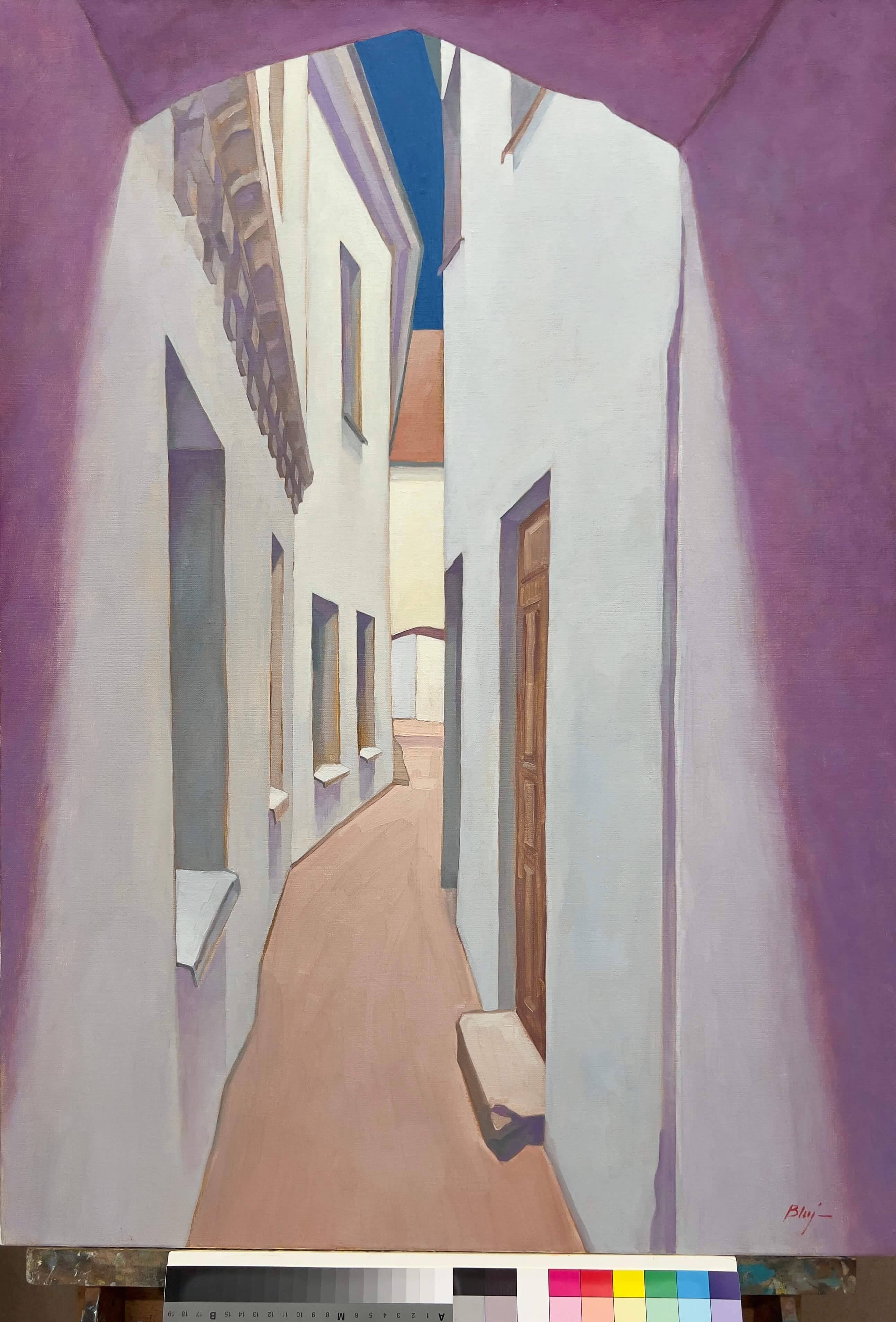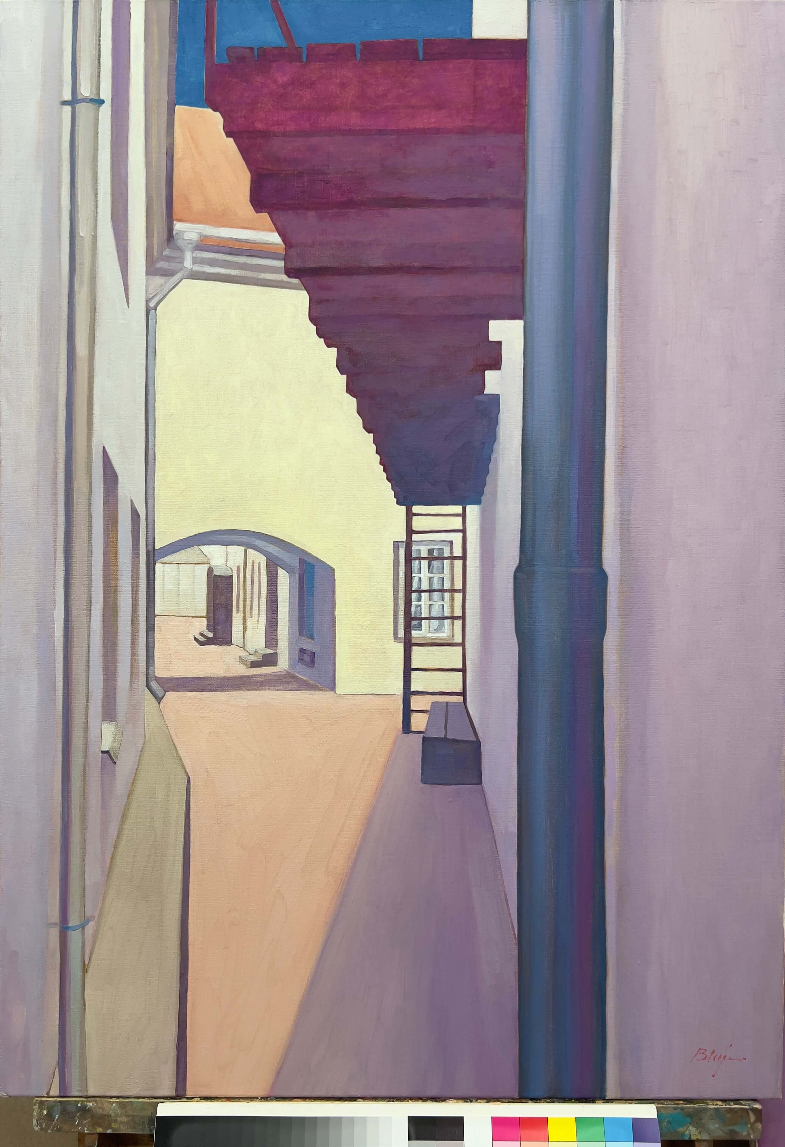 Ulica Św. Michała, Robert Bluj, 2003 rok technika olejno woskowa na płótnie lnianym 100x70cm, Archiwum prywatne
