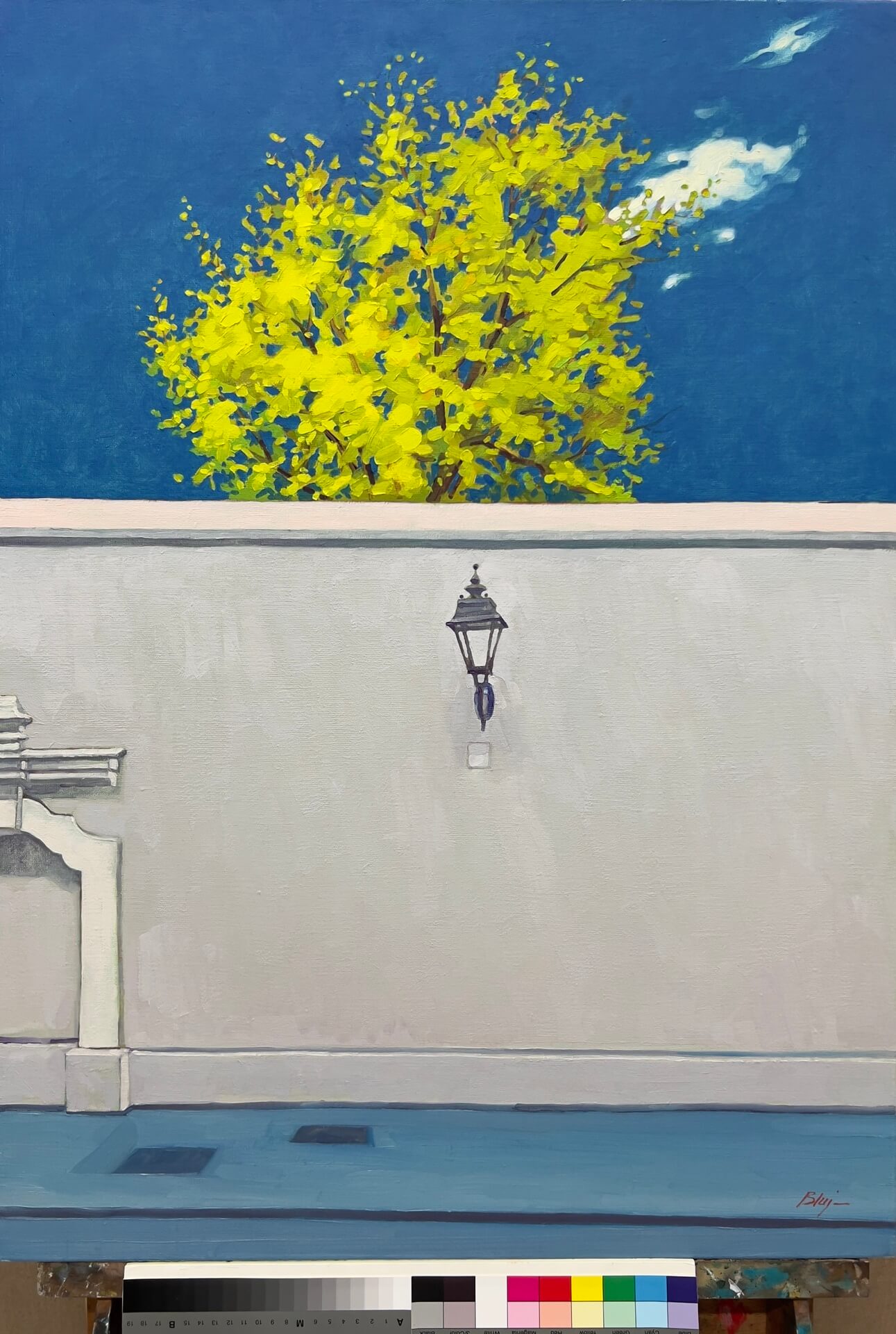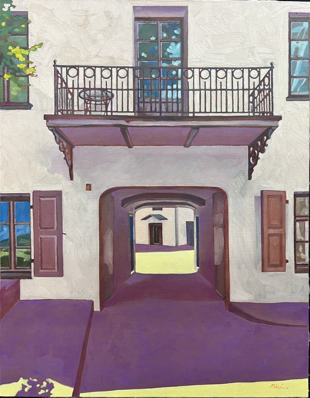 Brama przy literackiej, Robert Bluj, 2023 rok technika olejno woskowa na płótnie lnianym 90x65cm, Archiwum prywatne