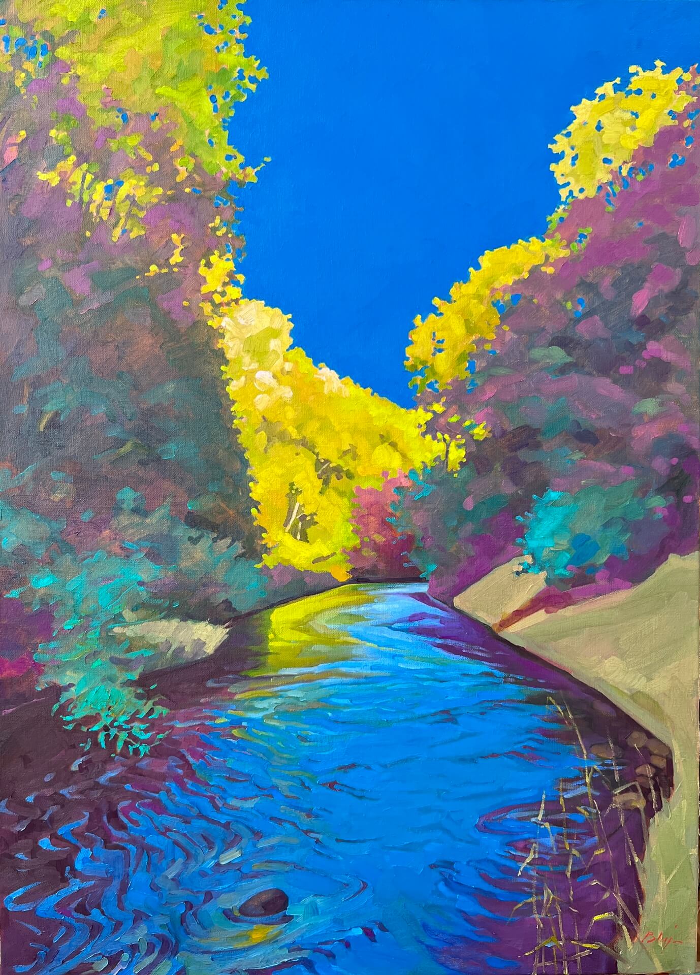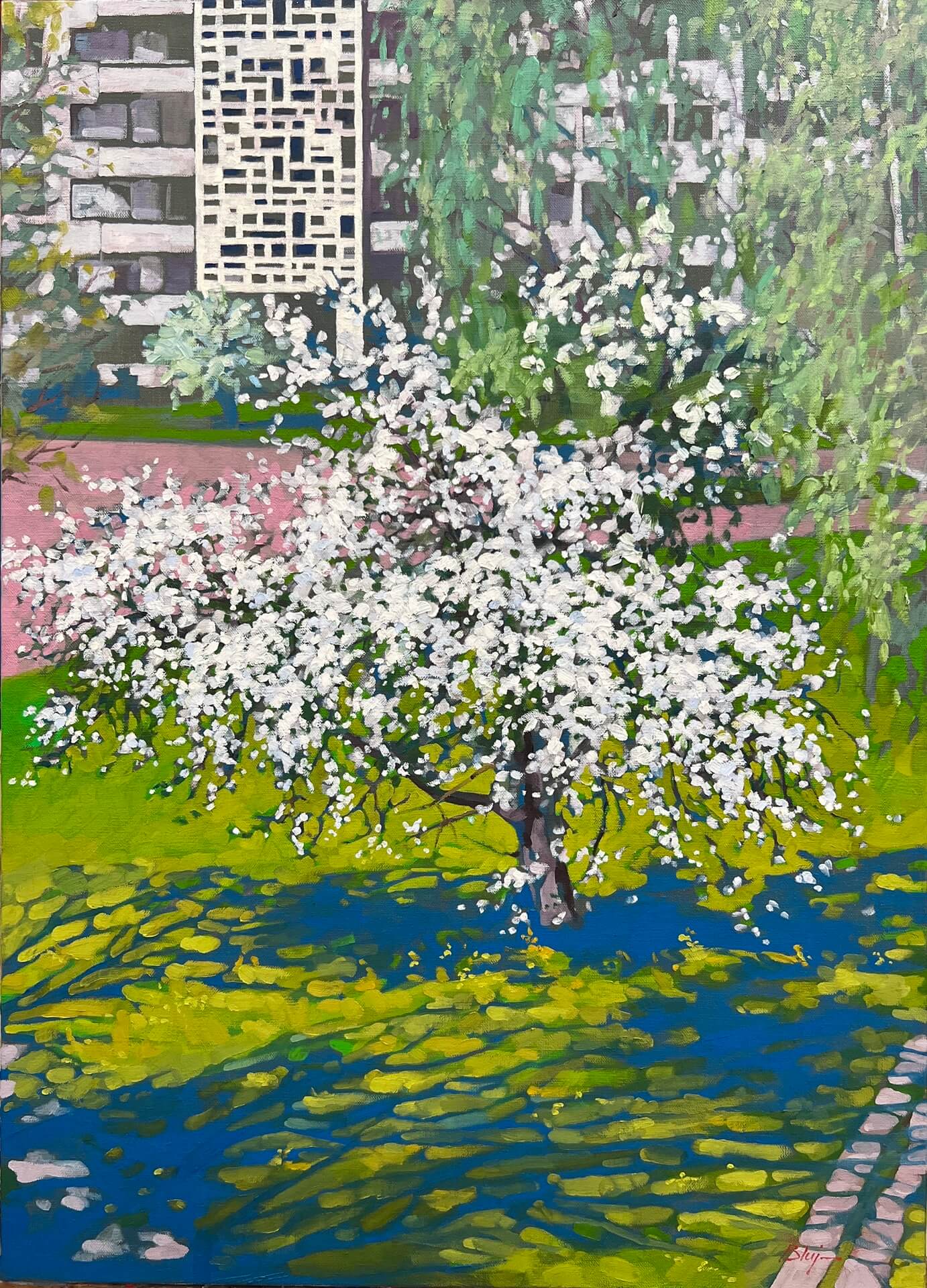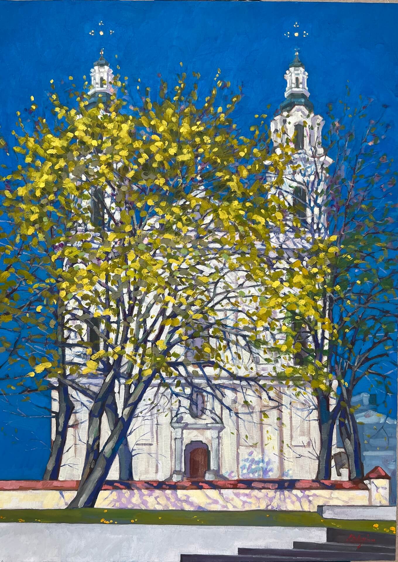 Kościół Św. Archanioła Rafała ,,Przedwiośnie” Robert Bluj, 2024 technika olejno woskowa na płótnie lnianym 90x65, Archiwum prywatne