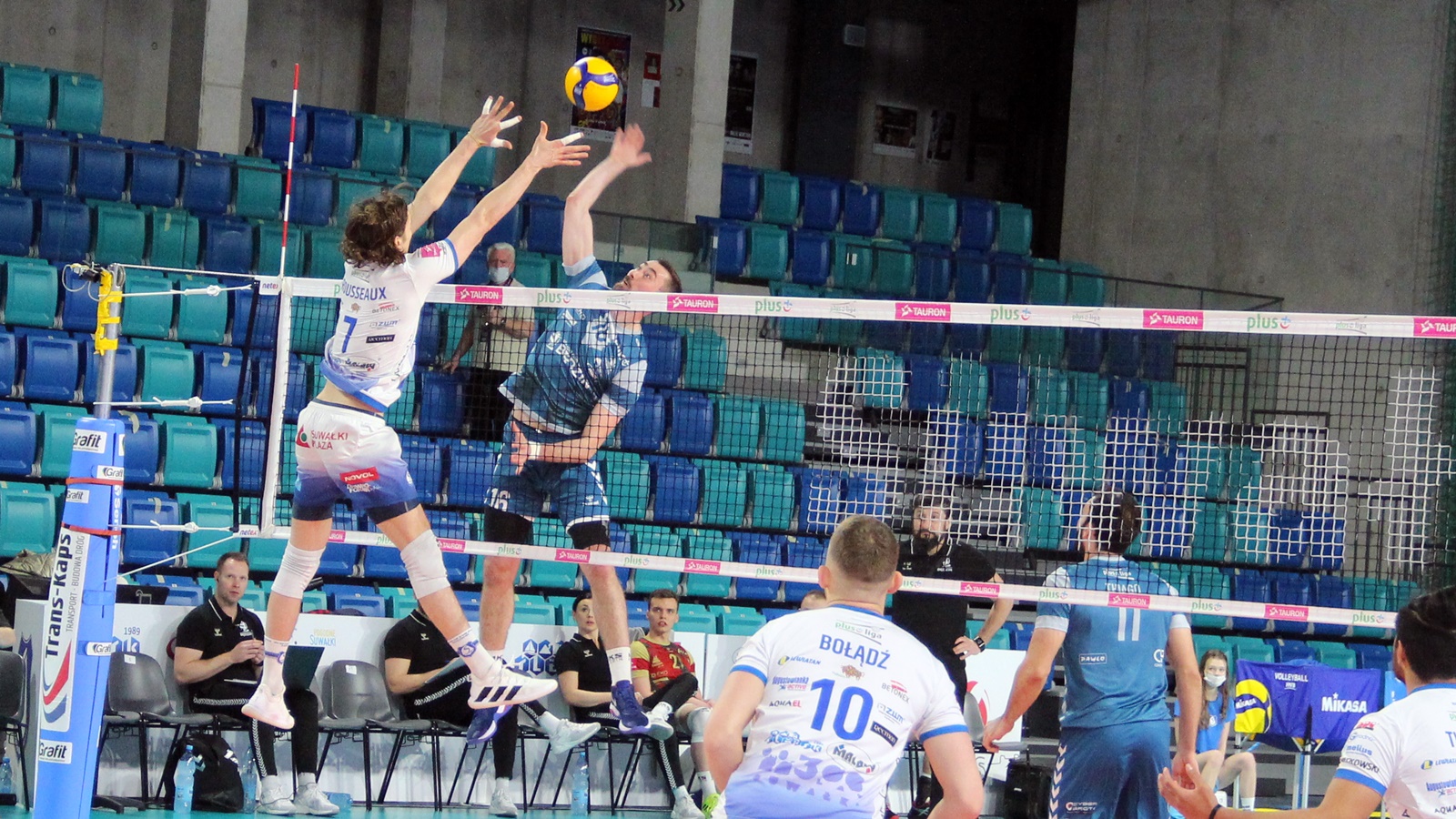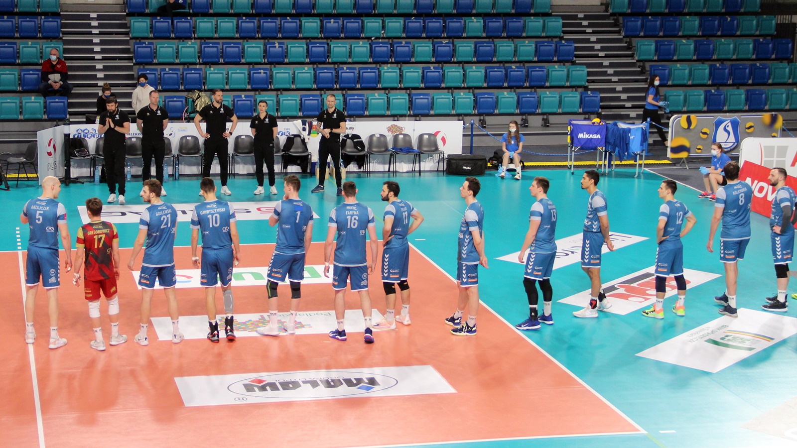 Ślepsk Malow Suwałki: Waliński (9), Rousseaux (12), Bołądź (17), Takvam (6), Sapiński (5), Tuaniga (1), Czunkiewicz (libero) oraz Szwaradzki, Rudzewicz.