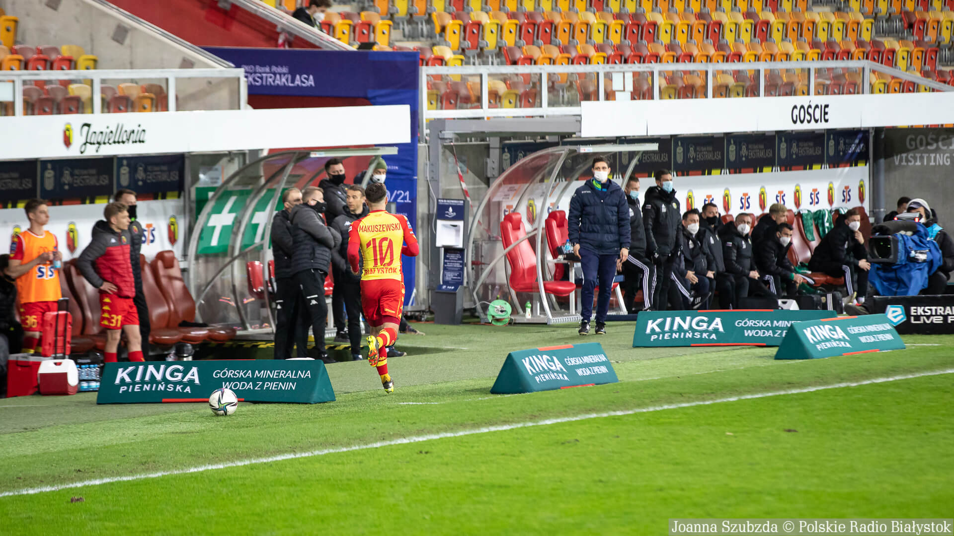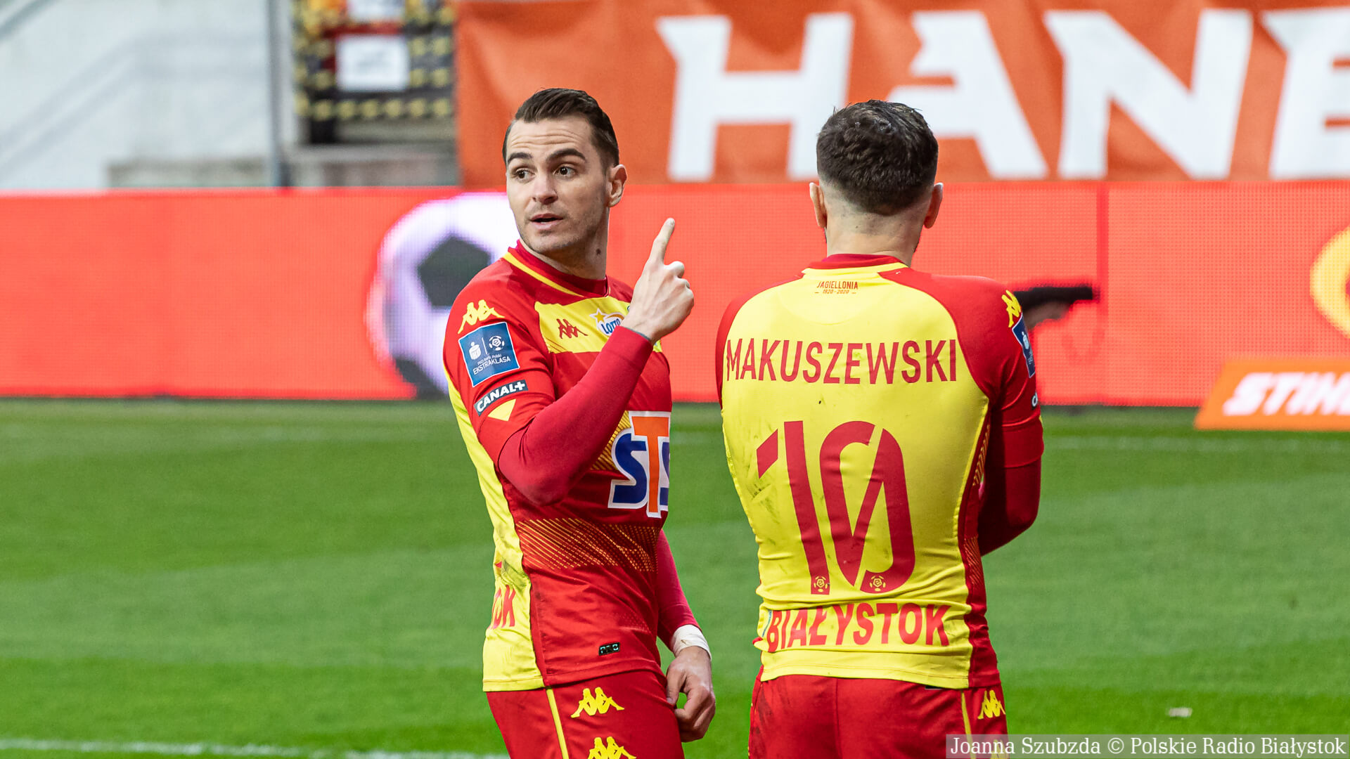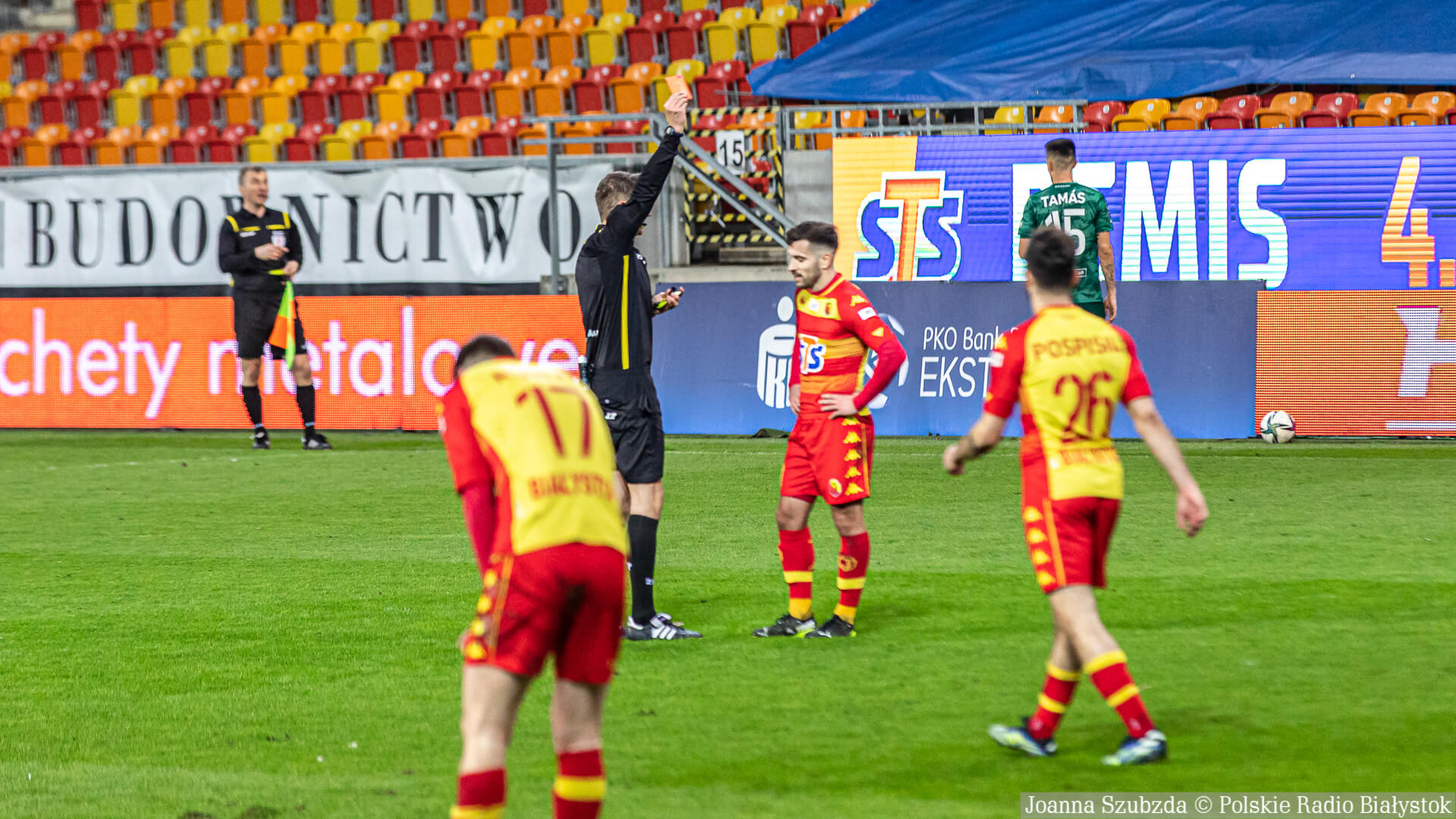 Ostatnie 10 min. meczu Jagiellonia Białystok grała w osłabieniu po drugiej żółtej kartce i w konsekwencji czerwonej dla Macieja Makuszewskiego.
