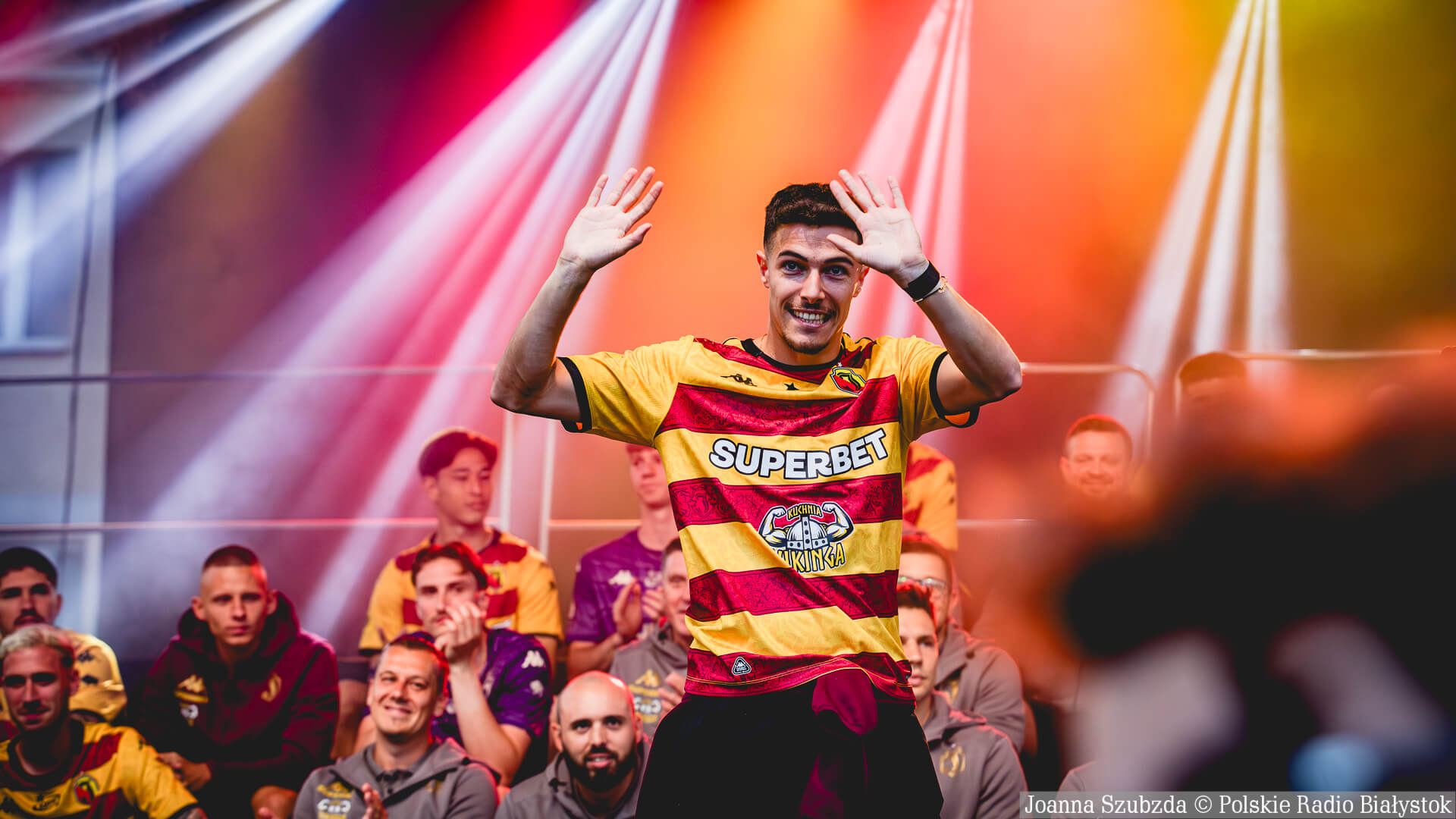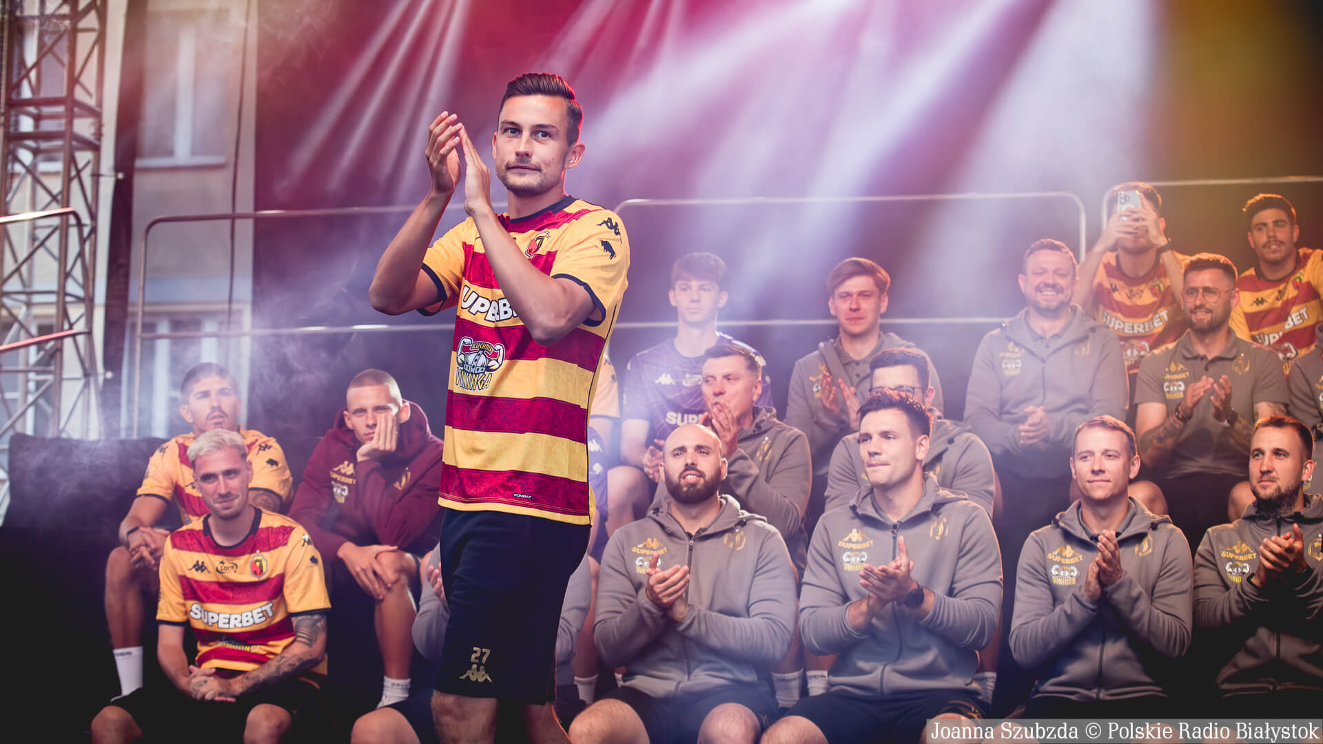 Na scenie przy ratuszu zaprezentowali się wszyscy zawodnicy i sztab trenerski. Była to też oficjalna prezentacja nowych domowych i wyjazdowych strojów Jagiellonii.