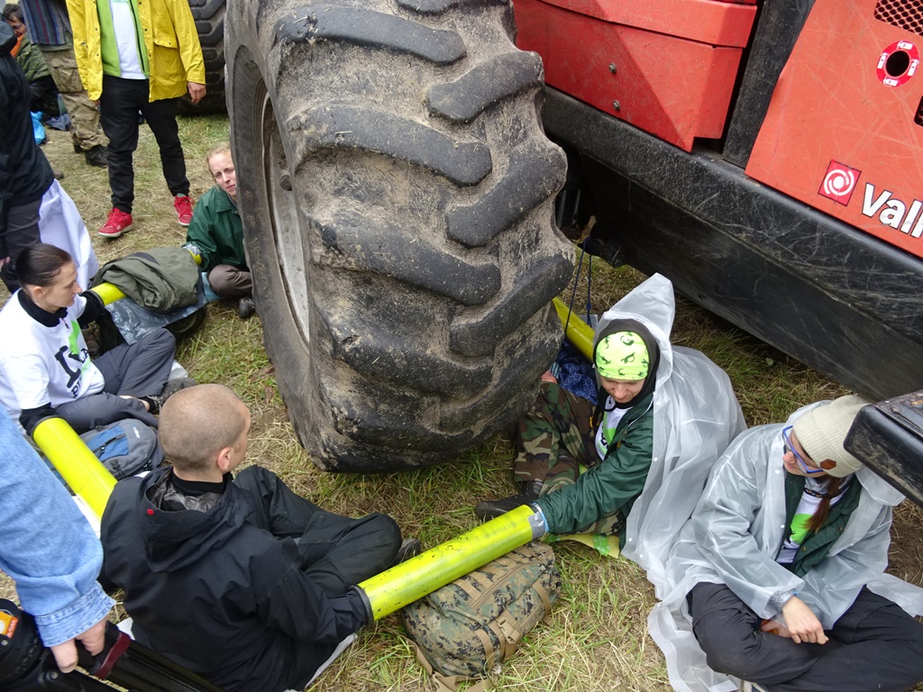 Kilkunastu aktywistów Greenpeace i Dzikiej Polski kolejny raz blokuje ciężki sprzęt do usuwania drzew w Puszczy Białowieskiej w nadleśnictwie Browsk.