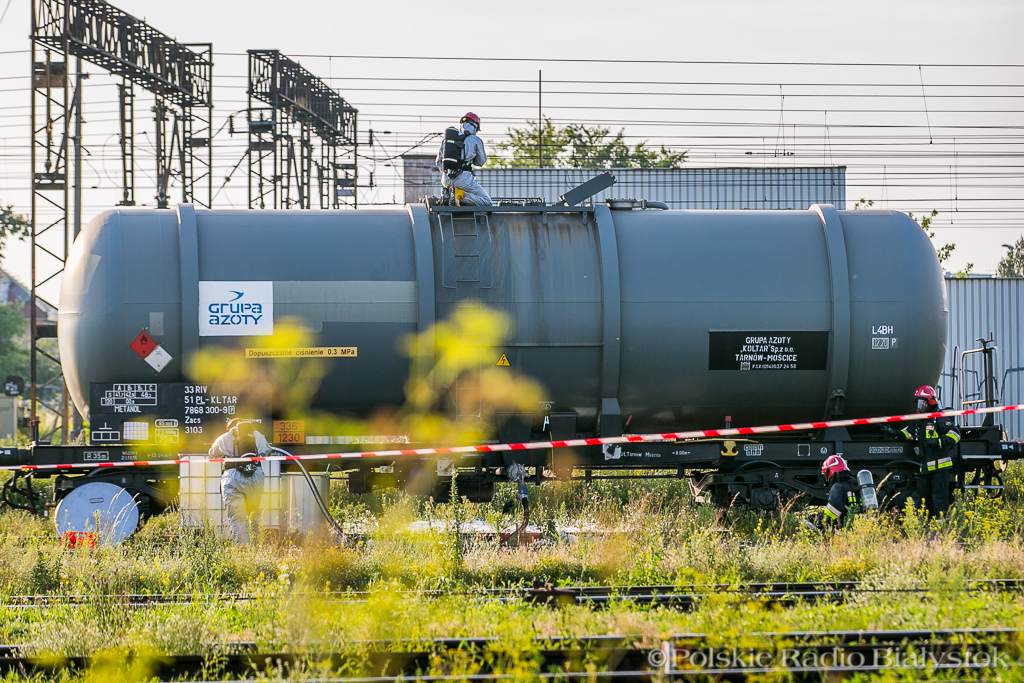 Radio Białystok | Wiadomości | Wiadomości - Rozszczelnienie cysterny na bocznicy kolejowej w Białymstoku