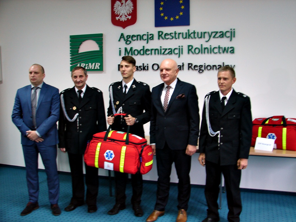 Cztery torby ratunkowe R1, każda o wartości około 1,2 tys. zł., przekazał strażakom – ochotnikom dyrektor Podlaskiego Oddziału Regionalnego Agencji Restrukturyzacji i Modernizacji Rolnictwa. To nagrody za udział w konkursie "Bezpieczna zabawa i praca na wsi podczas wakacji".