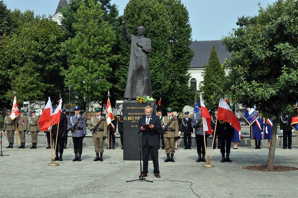 Z pokorą, ale i wdzięcznością dziękujemy dzisiaj panu Bogu za dar jego życia, za dar jego dzieła. Za to, że dzięki niemu dzisiaj jesteśmy wolni, przełamaliśmy, a do tego prowadził nas ksiądz Jerzy Popiełuszko, totalitaryzm, przełamaliśmy zniewolenie, komunizm. Odzyskaliśmy niepodległość, suwerenność. Pokonaliśmy pod jego przewodnictwem znaczną część zła, bo pamiętamy jego najważniejsze słowa - "zło dobrem zwyciężaj" - mówił podczas uroczystości Jarosław Zieliński.