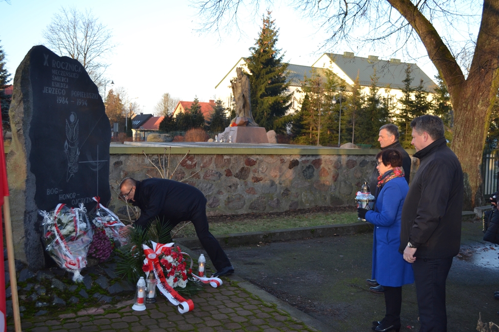 Suwalczanie zebrali się rano przy znajdujących się w Parku im. Konstytucji 3 Maja Dębie Wolności oraz pobliskim pomniku ks. Jerzego Popiełuszki.