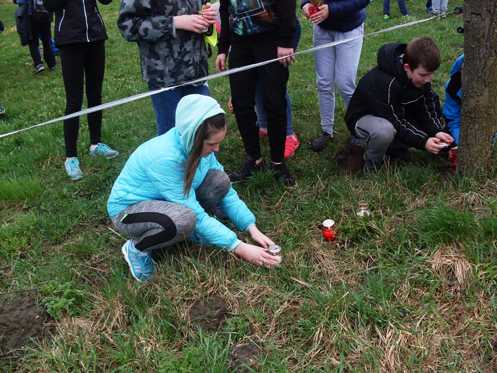 Na zakończenie uczniowie otrzymali proporce powstańcze. Zapalili również 32 czerwono-białe znicze ku czci powstańców z Żarnowa.