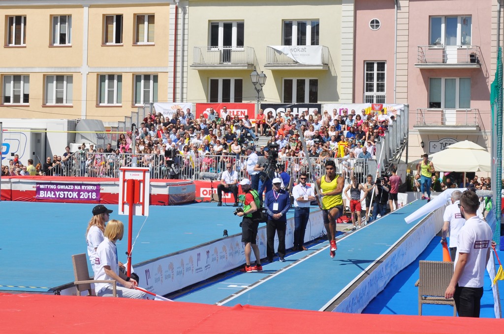 A na Rynku Kościuszki #Białystok podczas mityngu gwiazd @LisekPiotr pokonał właśnie wysokość 5,35 w skoku o tyczce. pic.twitter.com/Lt0XbSS11z