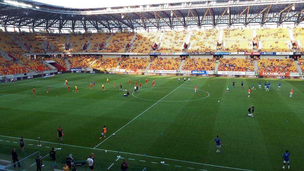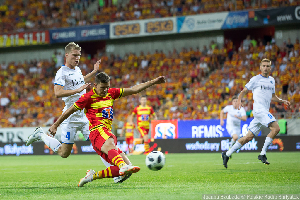 Przewagę w posiadaniu piłki mieli goście, ale Jagiellonia - choć dość głęboko cofnięta - nie pozwala zespołowi z Gandawy stworzyć dogodnej sytuacji bramkowej. W 33. min szansę miał jednak znowu Dompe i znowu z pola karnego przestrzelił.