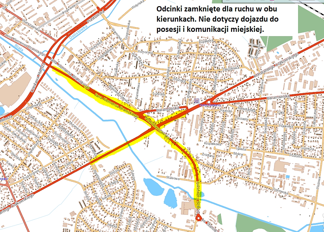 Będą one całkowite zamknięte dla ruchu pojazdów w obu kierunkach. Objazdy będą prowadzić - od strony Lublina w kierunku centrum miasta: ulicami Kuronia, Mickiewicza i Miłosza, a dla podróżujących w kierunku Lublina od strony centrum - ulicami Miłosza, Mickiewicza i Kuronia.