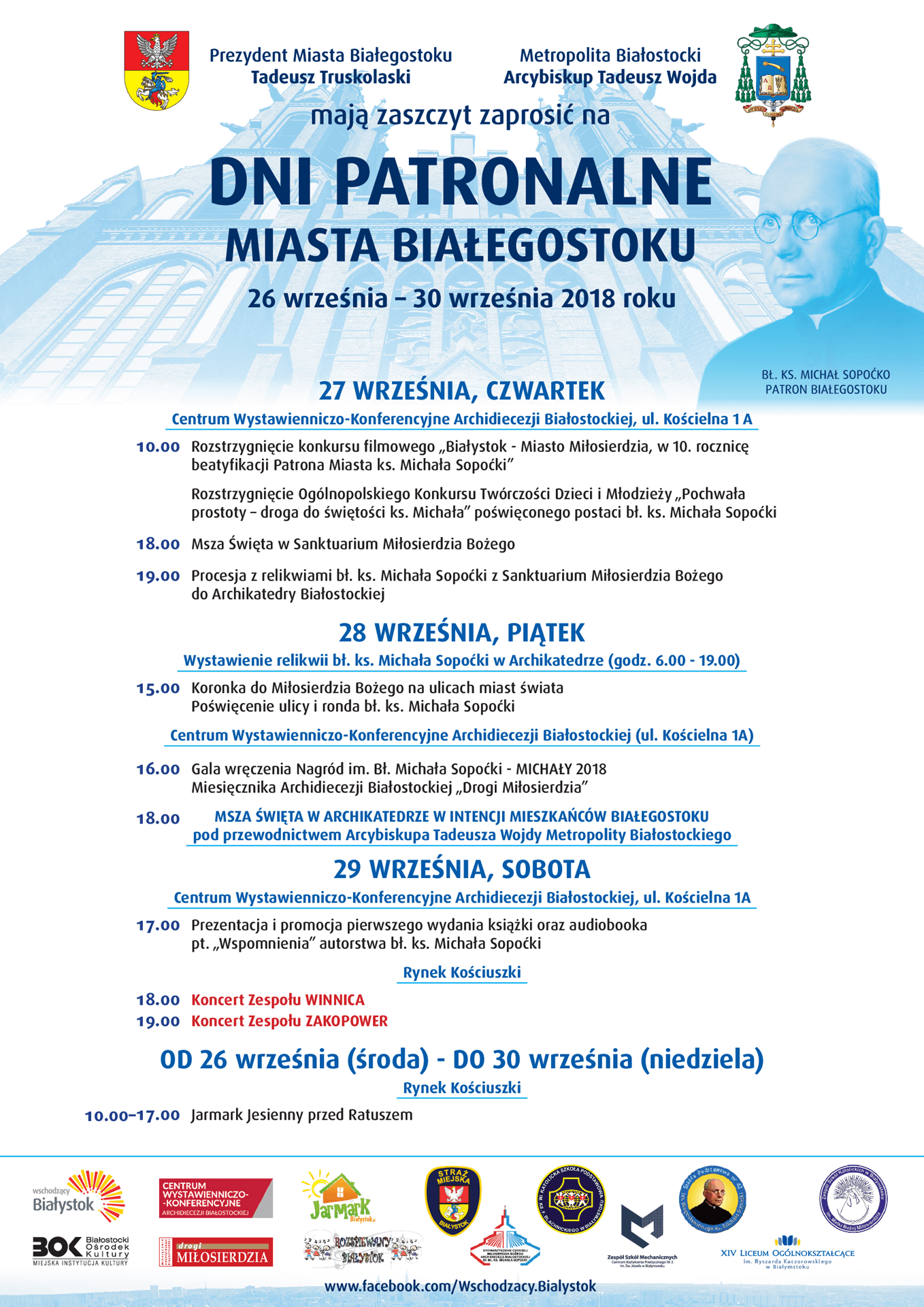 Dni Patronalne potrwają od 26. do 30. września. Są związane z 10. rocznicą beatyfikacji ks. Michała Sopoćki - patrona miasta.