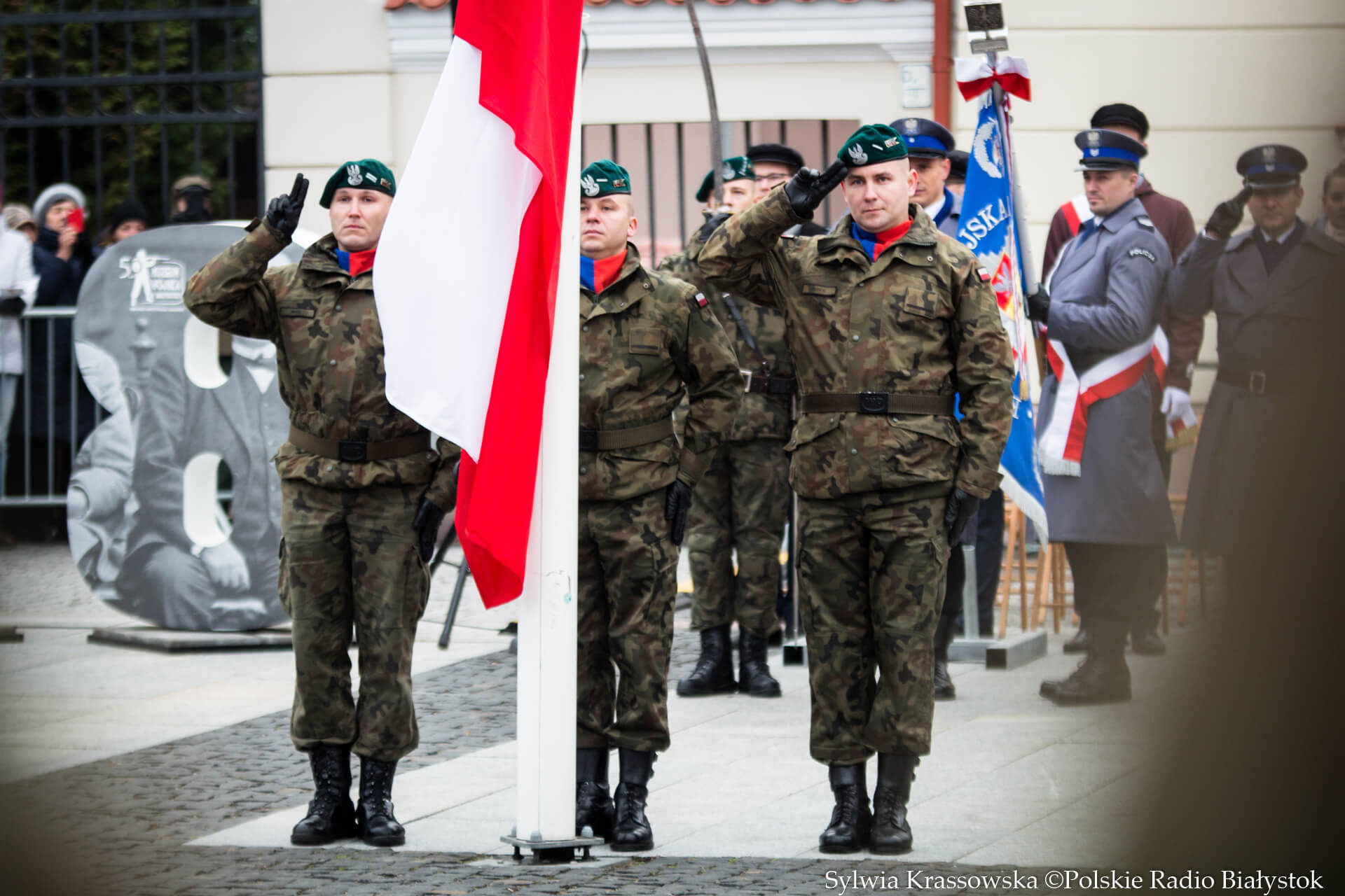 Odśpiewano hymn Polski, złożono kwiaty, wręczono awanse na wyższe stopnie wojskowe, resortowe odznaczenia. W uroczystościach wzięli licznie udział mieszkańcy miasta i regionu, parlamentarzyści, władze województwa podlaskiego i Białegostoku, duchowieństwo różnych wyznań, m.in. katolicki metropolita białostocki abp Tadeusz Wojda, ordynariusz prawosławnej diecezji białostocko-gdańskiej abp Jakub, a także prawosławny bp Andrzej, służby mundurowe, dyplomatyczne, kombatanci, poczty sztandarowe, harcerze.