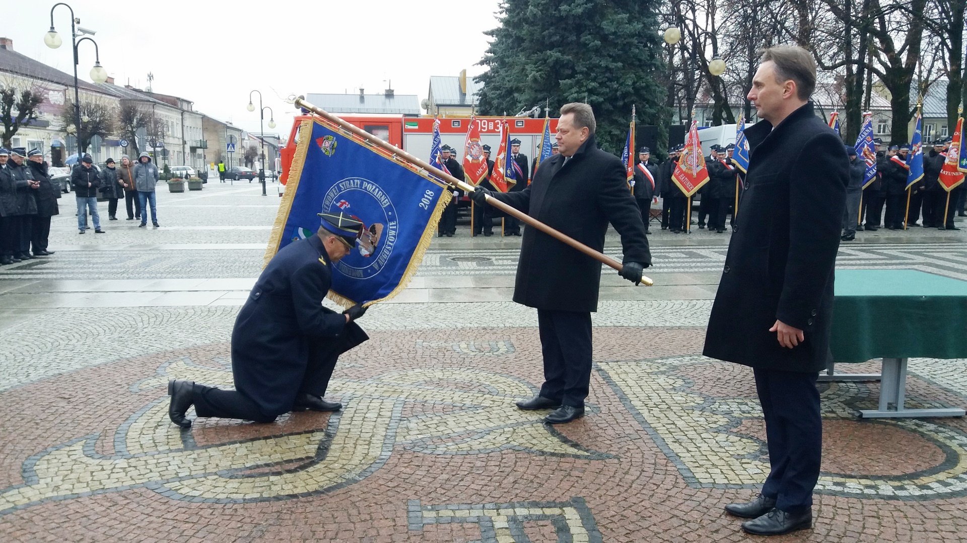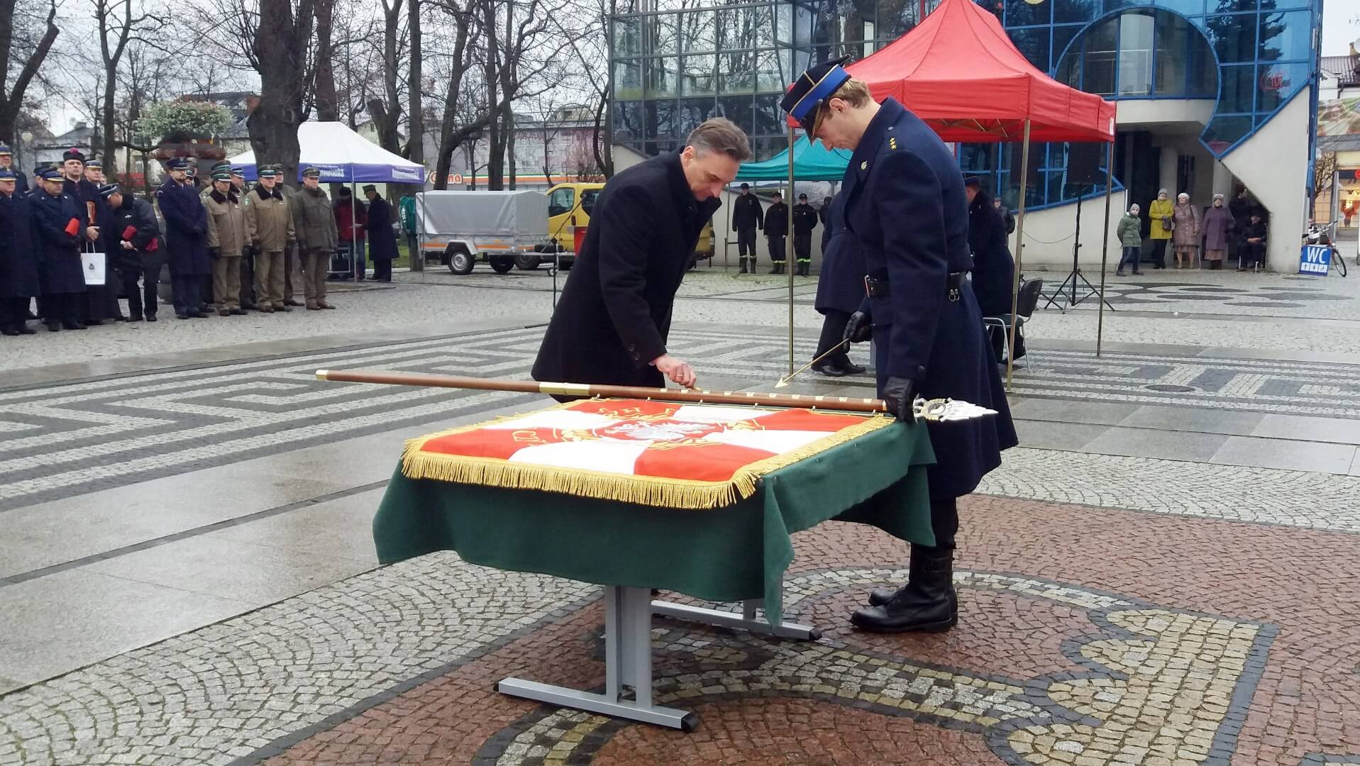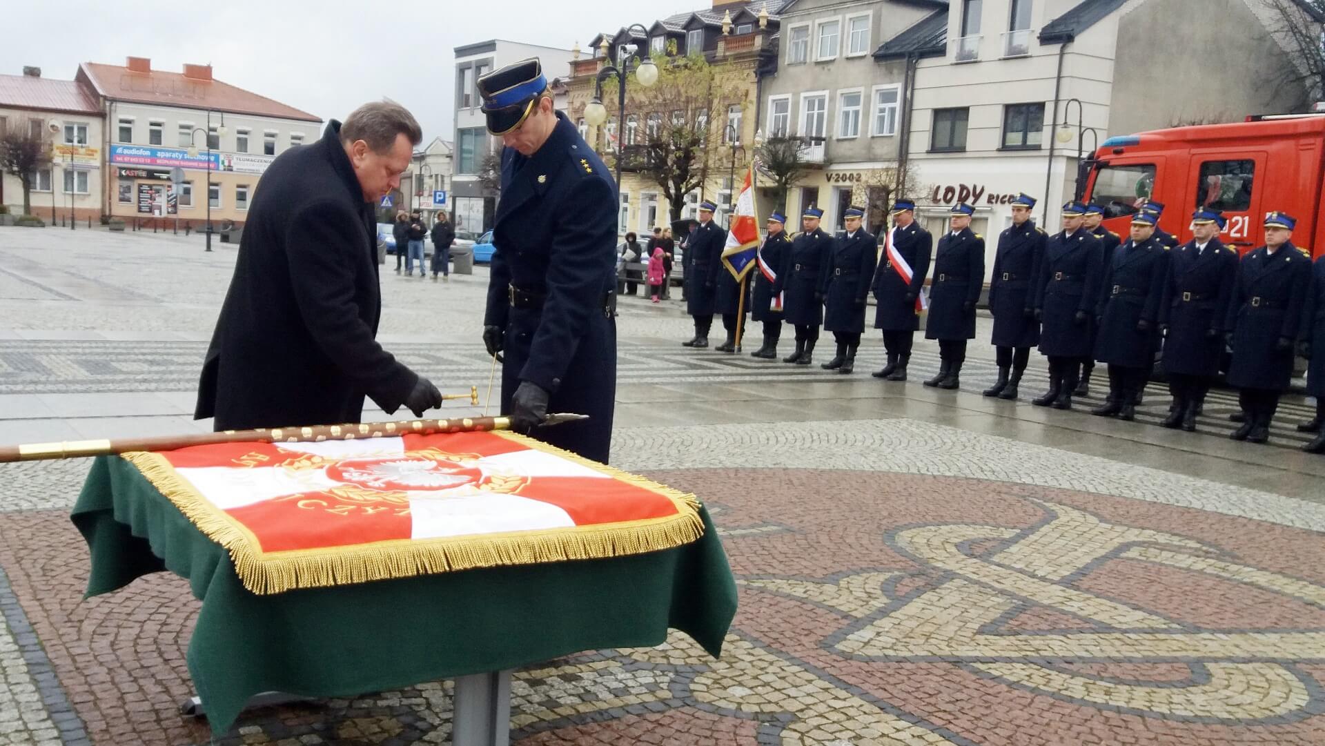Chorągiew trafiła tam dzięki zaangażowaniu lokalnych polityków, samorządowców i społeczników. Dowódca tamtejszej straży pożarnej starszy brygadier Leszek Krzyżewski podkreślał, że jego jednostka na ten ważny moment czekała przez wiele lat.