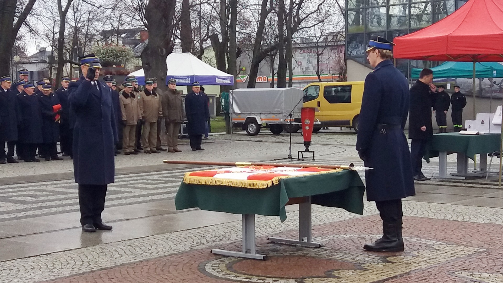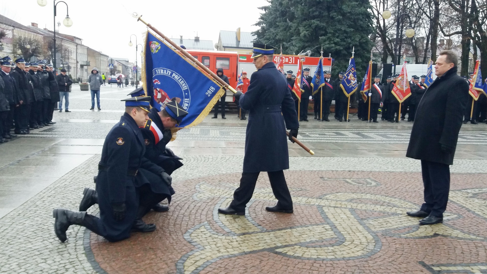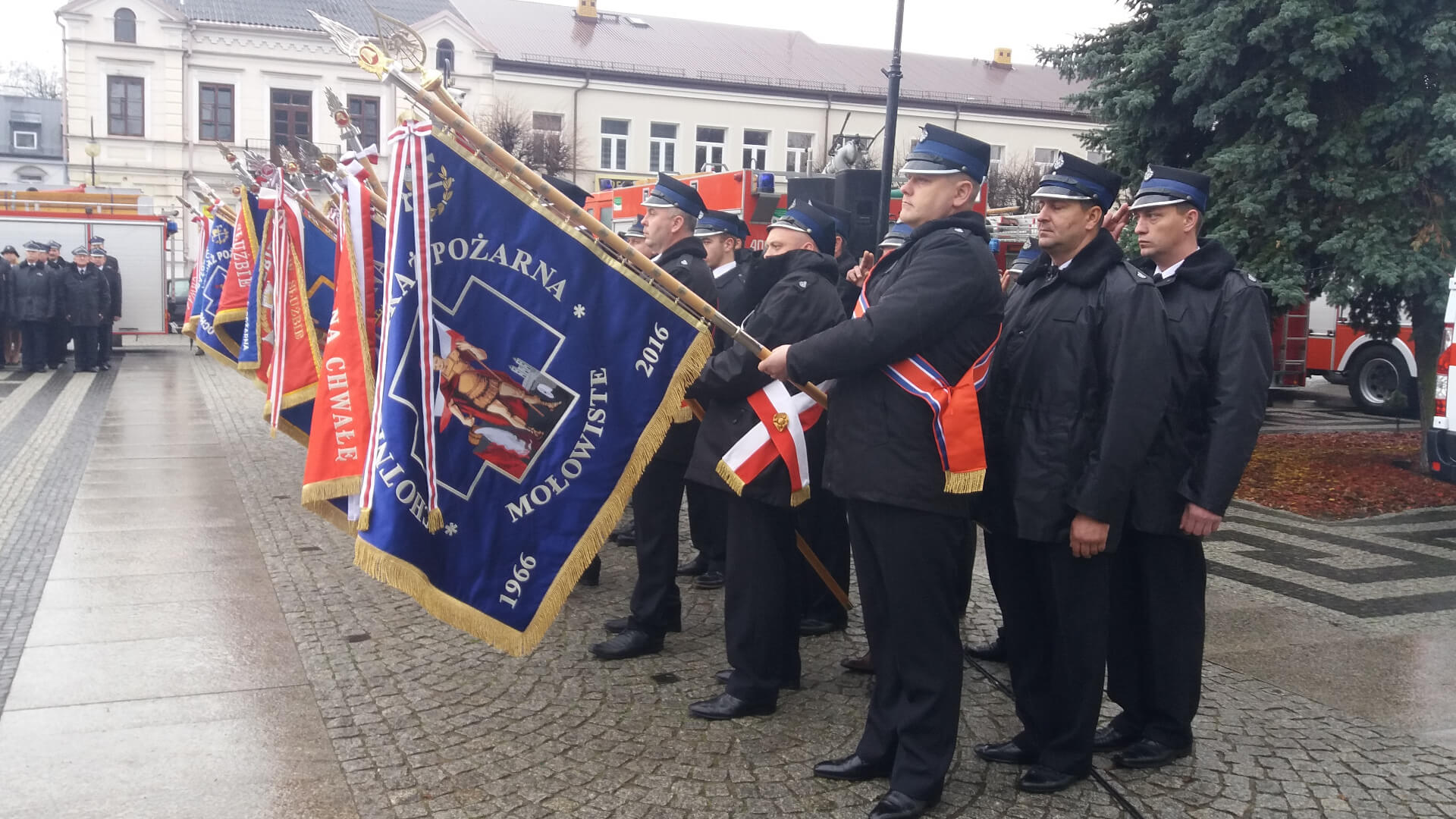 Chorągiew trafiła tam dzięki zaangażowaniu lokalnych polityków, samorządowców i społeczników. Dowódca tamtejszej straży pożarnej starszy brygadier Leszek Krzyżewski podkreślał, że jego jednostka na ten ważny moment czekała przez wiele lat.