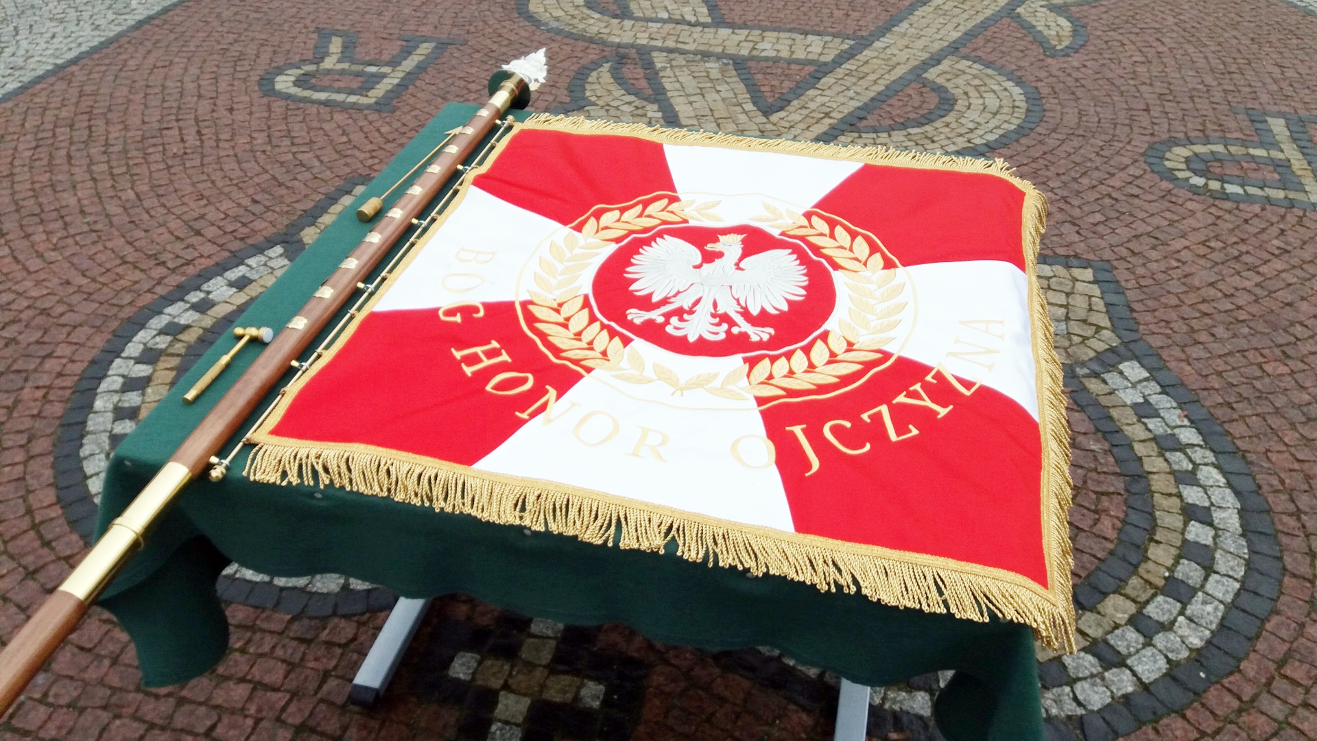 To pierwszy sztandar w Państwowej Straży Pożarnej z napisem "Bóg Honor Ojczyzna"