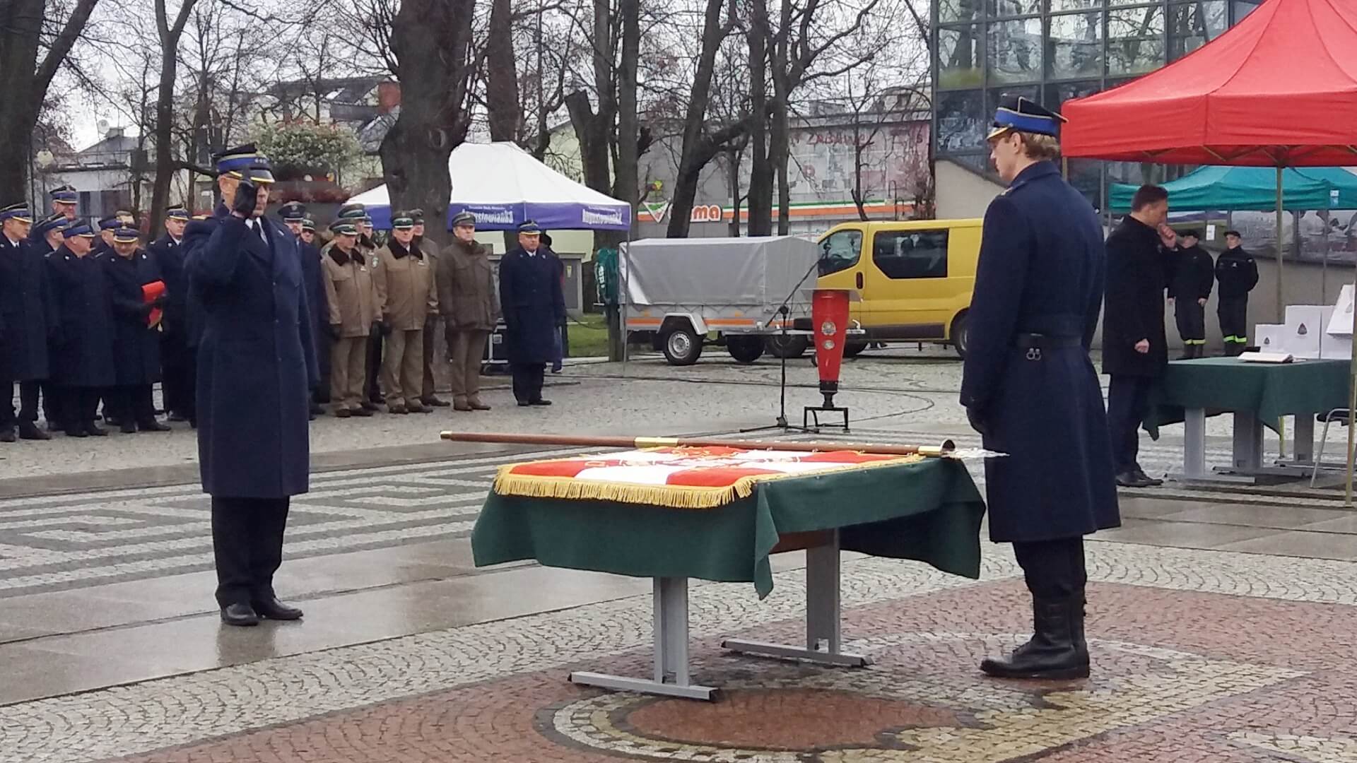Augustowscy strażacy otrzymali sztandar ze słowami "Bóg, Honor, Ojczyzna" - to pierwszy taki w w Państwowej Straży Pożarnej.
