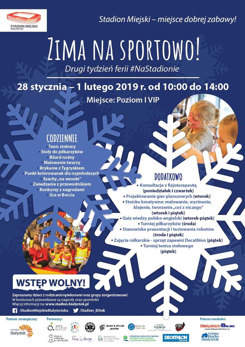 Każdego dnia na najmłodszych czekać będzie wiele atrakcji. Stadion Miejski w Białymstoku w drugim tygodniu ferii organizuje "Zimę na sportowo". To propozycja na aktywne spędzenie zimowej przerwy w nauce.