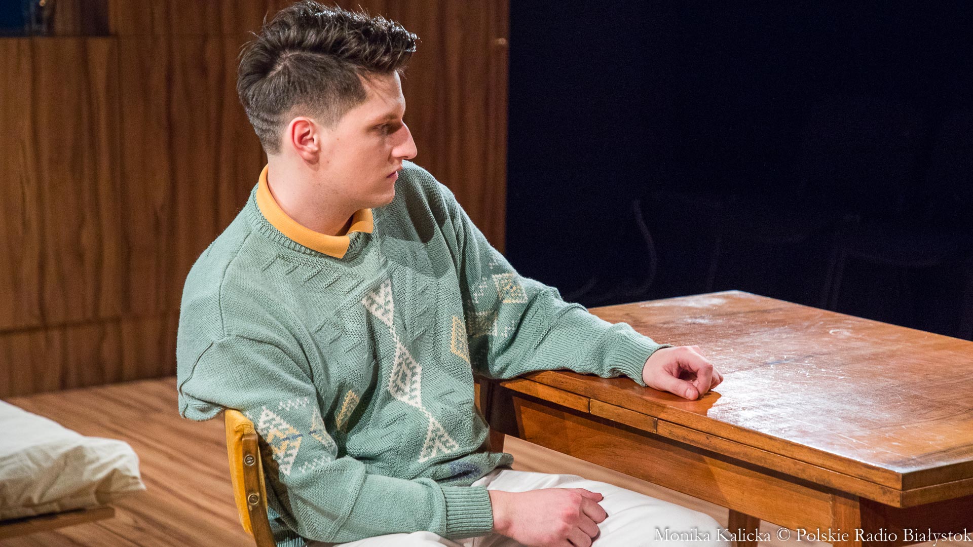 Albinos, czyli postać, którą mam okazję kreować, jest młodym chłopakiem poszukującym tożsamości. Zauważa swoją odmienność, staje w opozycji do świata, szuka rzeczy i ludzi, dzięki którym będzie mógł sam się zdefiniować jako człowiek. Porusza kwestie, które dotyczą każdego z nas. Kim jestem? Gdzie jest moje miejsce na świecie? Czym jest przyjaźń?Jak rozpoznać prawdziwą miłość? Przy tym wszystkim jest człowiekiem wrażliwym, otwartym na muzykę, a czasem impulsywnym. Szalenie ciekawe jest obserwowanie, jak Albinos dojrzewa we mnie i odnajduje coraz więcej połączeń ze światem i postaciami współistniejącymi w sztuce. Praca nad spektaklem powoli dobiega końca, w piątek premiera, lecz sądzę, że do ostatniej chwili będziemy się zaskakiwać nowymi odkryciami. Wszyscy są głęboko zaangażowani w pracę, a to pozwala nam na niesamowitą eksploatację Gamajdowskich serc i ich tajemnic
