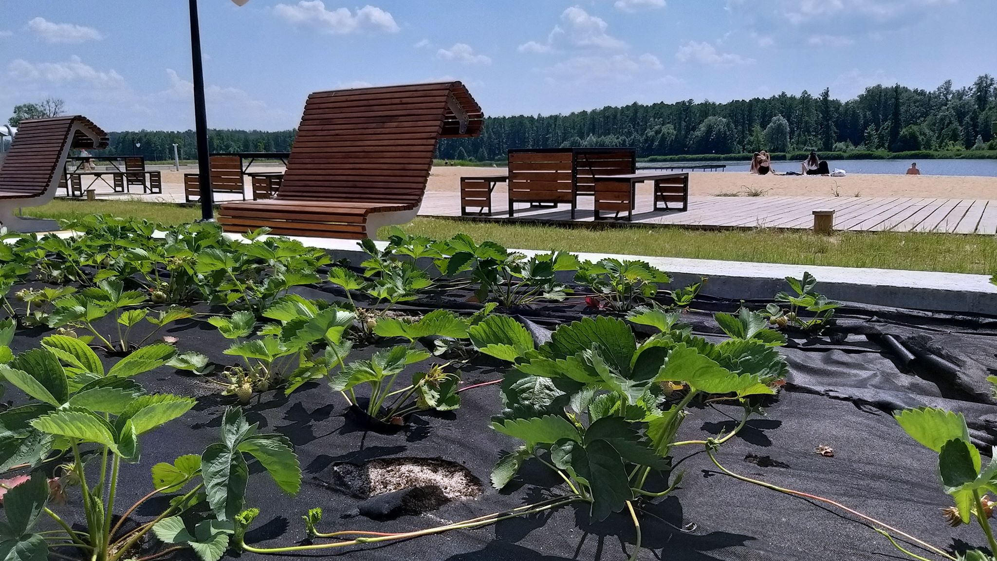 Truskawki przy zalewie w Korycinie to nowy pomysł, który ma zachęcać turystów do wypoczynku na plaży. Pojawiły się też bulwary i drewniane leżaki. A chętni mogą skorzystać z wypożyczalni kajaków.