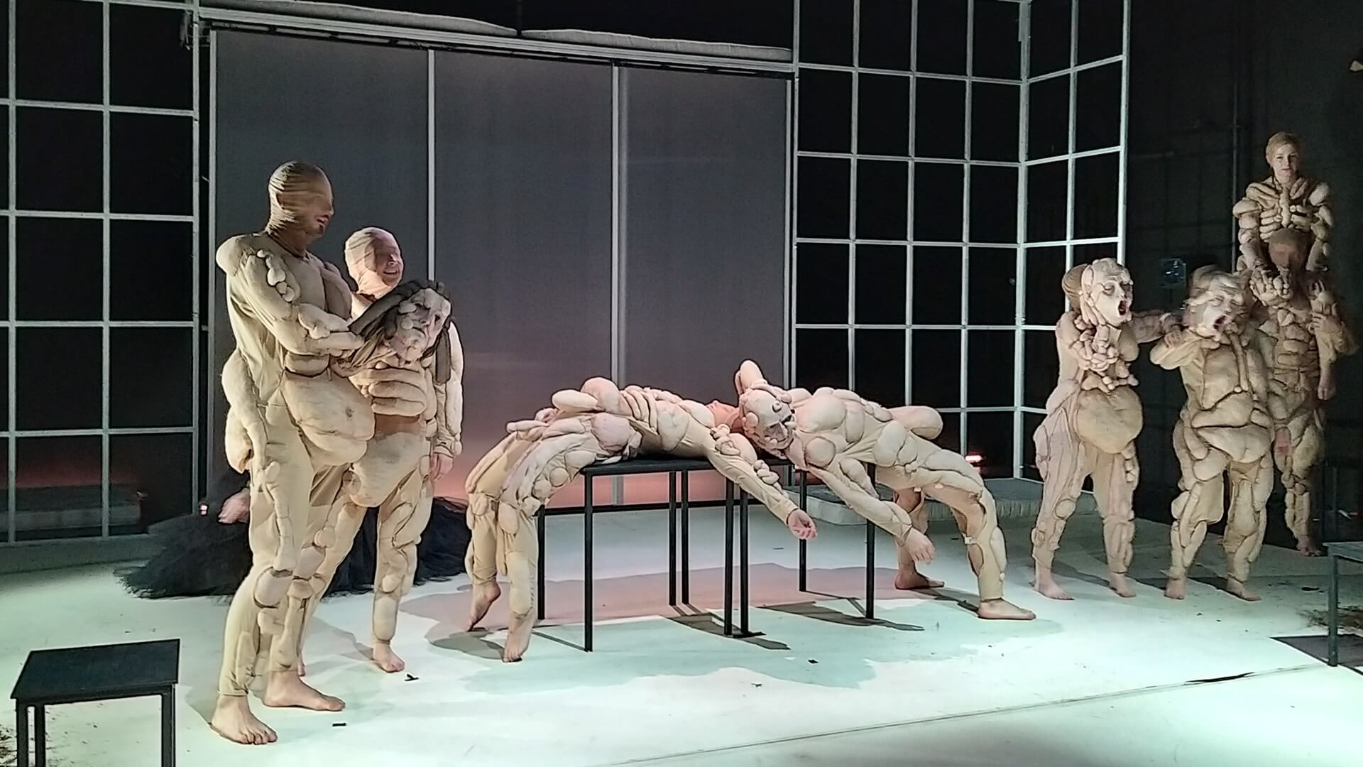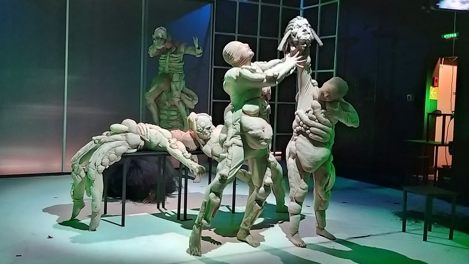 W przedstawieniu studenci wykorzystują elementy kultury hip-hopowej, pełen ekspresji ruch sceniczny, lalki, maski.