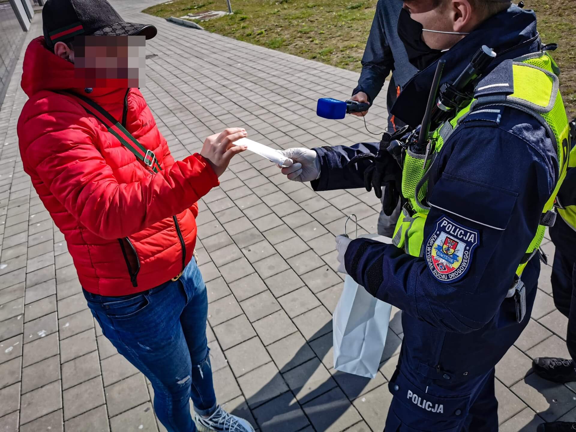 W sumie policjanci rozdali białostoczanom kilkadziesiąt maseczek ochronnych.