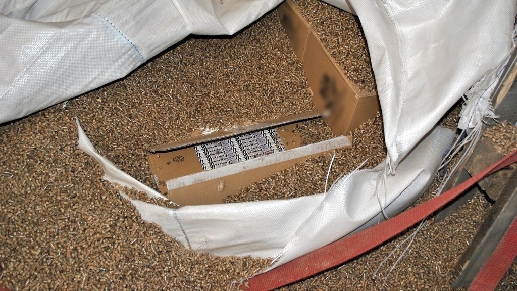 Strażnicy z polsko-białoruskiego przejścia granicznego w Bobrownikach skontrolowali białoruskiego tira, który zgodnie z dokumentami miał być załadowany pelletem do palenia. W trakcie szczegółowego sprawdzania ciężarówki okazało się, że w naczepie są przemycane papierosy.