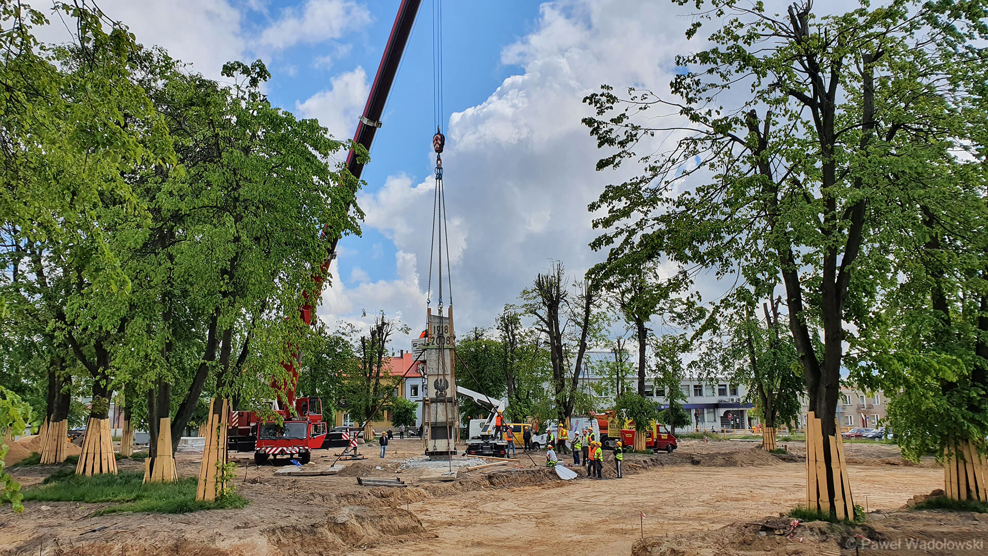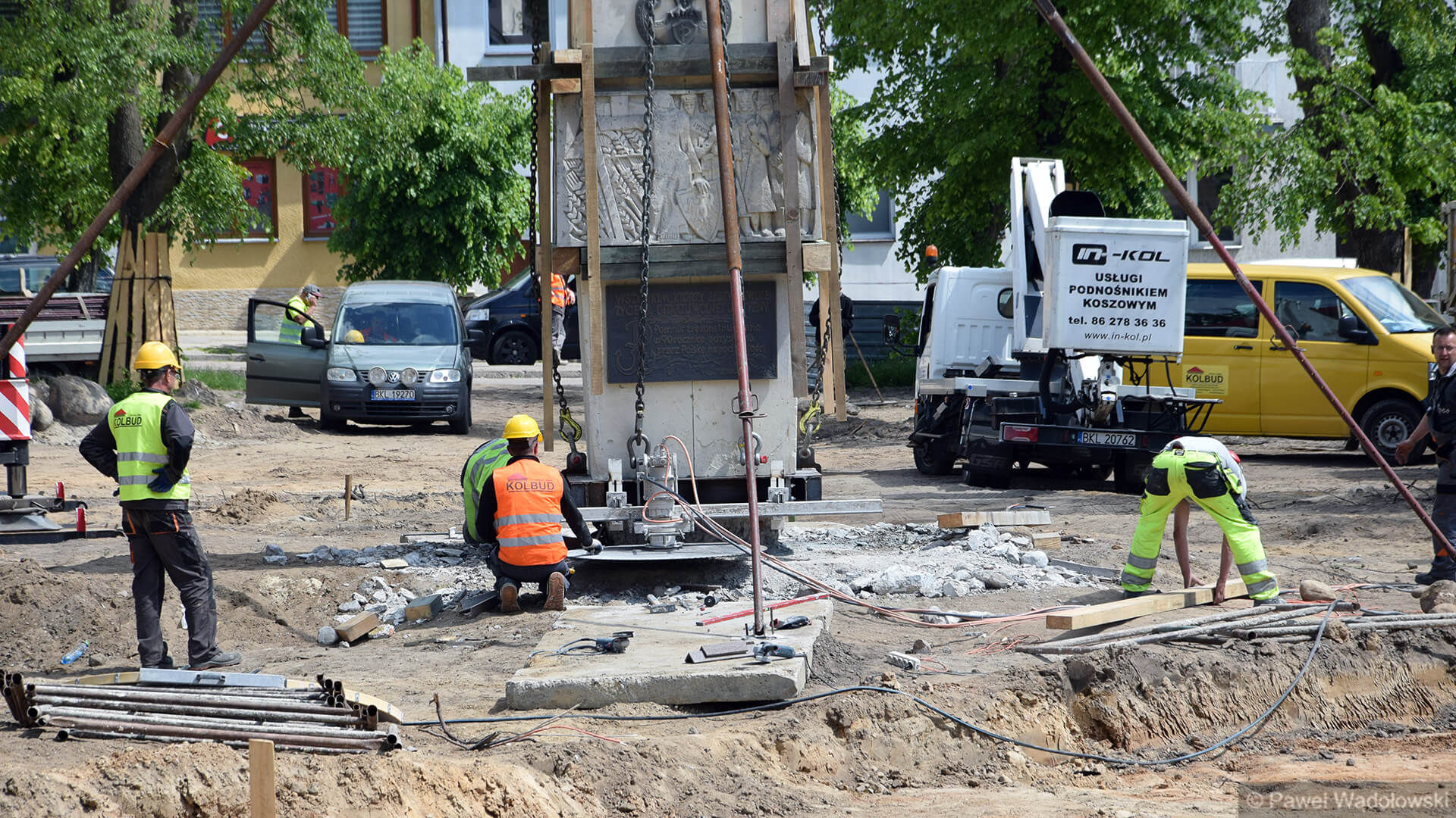 - Nie wiemy jak się ten pomnik zachowa podczas transportu. Mamy dźwig, który może podnieść 160 ton i piłę do przecięcia pomnika. Lekko napinamy liny i podcinamy cokół. A potem przenosimy w nowe miejsce. Pomnik waży 20 ton i jest z piaskowca. Zrobiliśmy specjalne zabezpieczenia, żeby się nie rozleciał - mówi Waldemar Skrodzki z firmy, która przebudowuje kolneński park.