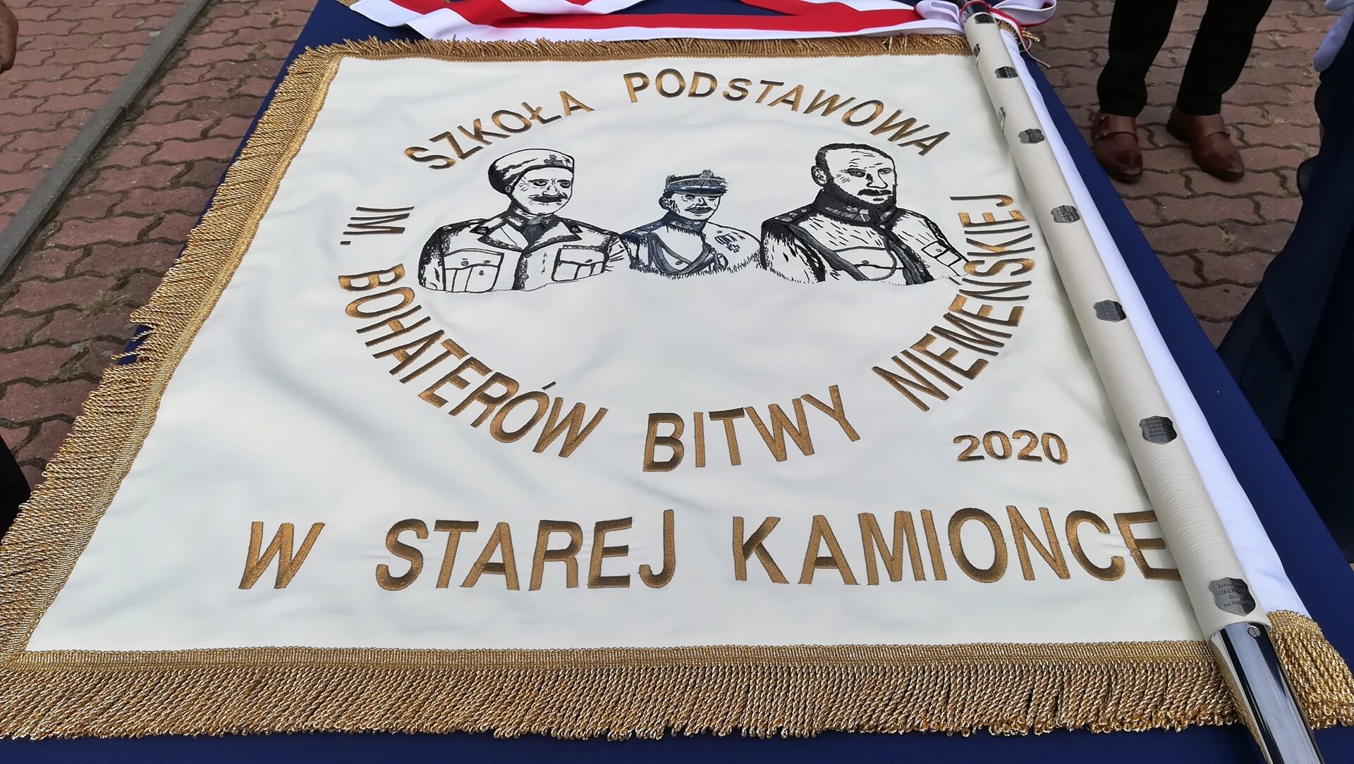 Odsłonięta została pamiątkowa tablica, ufundowana przez IPN. "W setną rocznicę bitwy niemeńskiej, bohaterom poległym za niepodległość ojczyzny i w obronie jej granic - wdzięczni sokólczanie" - taki napis na niej się znalazł. Szkoła podstawowa w Starej Kamionce (gmina Sokółka) od niespełna trzech miesięcy nosząca imię Bohaterów Bitwy Niemeńskiej, otrzymała sztandar.