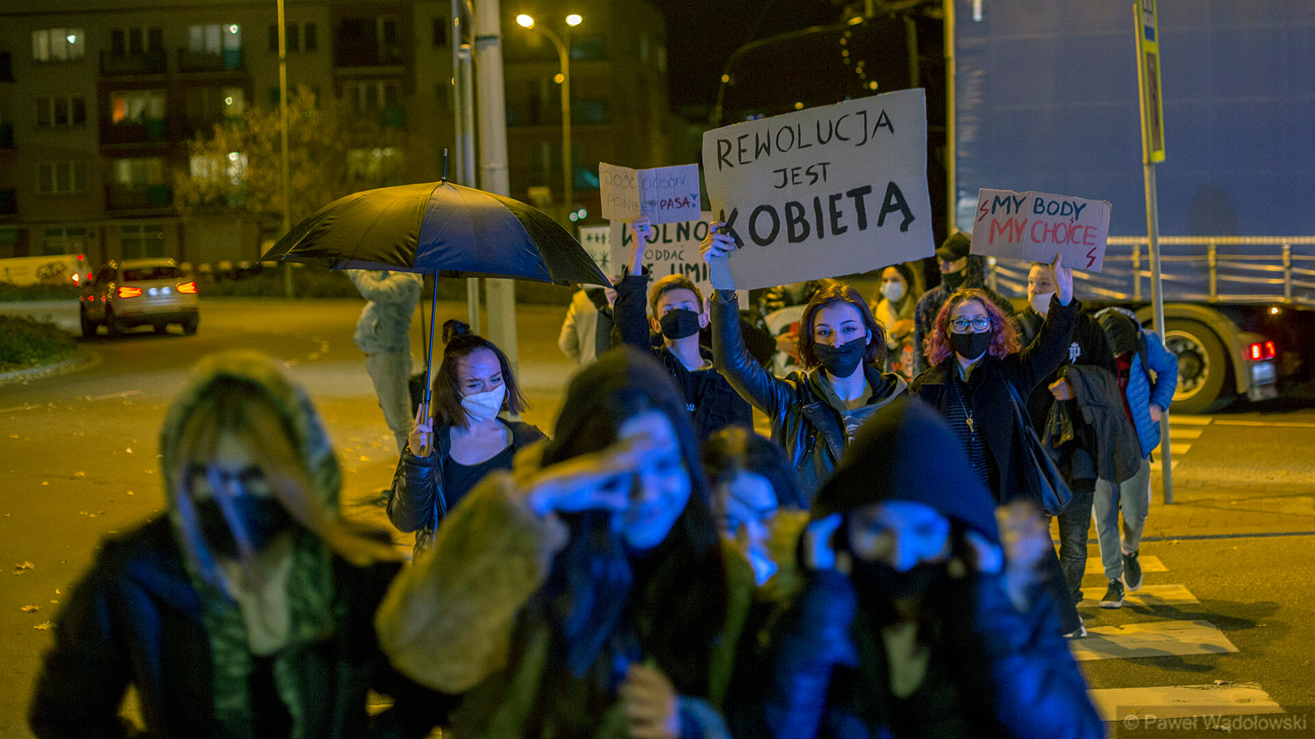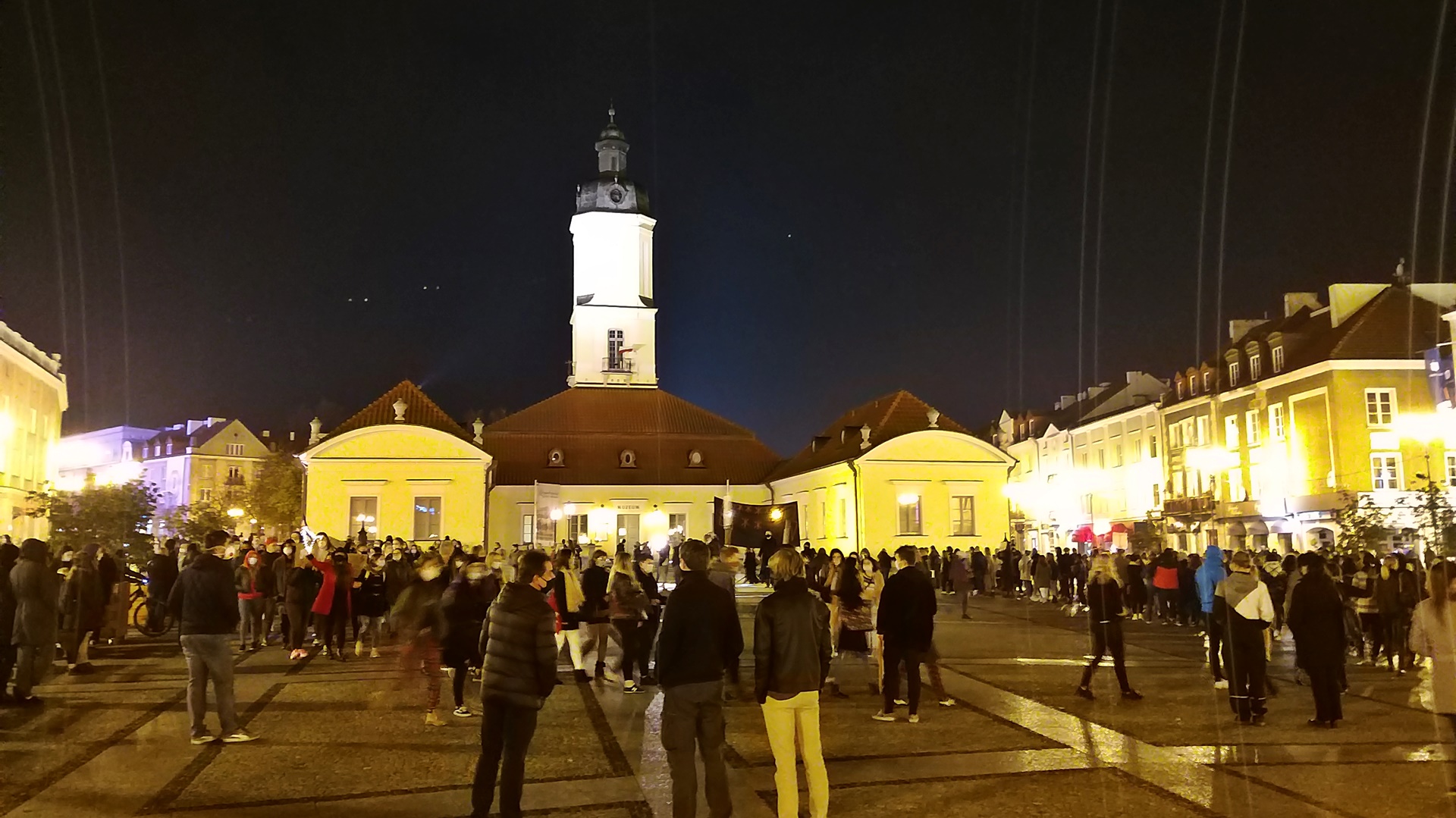 To najmniej liczny w ostatnich dniach protest w Białymstoku. O ile jeszcze w środę (28.10) według policji ulicami miasta spacerowało kilkanaście tysięcy osób, tak teraz przy Ratuszu zebrało się kilkuset uczestników. Wśród protestujących przeważają młode osoby, część z nich przyniosła transparenty z takimi hasłami jak na przykład "Z kobietami nie wygracie" czy też "Wolny kraj, wolny wybór". Protest przebiega bardzo spokojnie, nie ma dziś praktycznie żadnych przemówień, a jeśli są to bardzo krótkie. Podczas jednego z nich jedna z kobiet mówiła "nie damy się stłamsić, nie pozwolimy, żeby ktoś łamał konstytucję". Organizatorzy bardzo często puszczają muzykę, do której uczestnicy tańczą, śpiewają i klaszczą, a do tego wznoszą między innymi niecenzuralne okrzyki na partię rządzącą, a także skandują "Piekło kobiet" czy też "Rewolucja jest kobietą". Natomiast po drugiej stronie Ratusza, przy katedrze, a dokładnie na jej schodach, zebrało się kilkanaście osób, które - jak mówią - chcą bronić kościoła - relacjonuje z Rynku Kościuszki w Białymstoku Wojciech Szubzda.