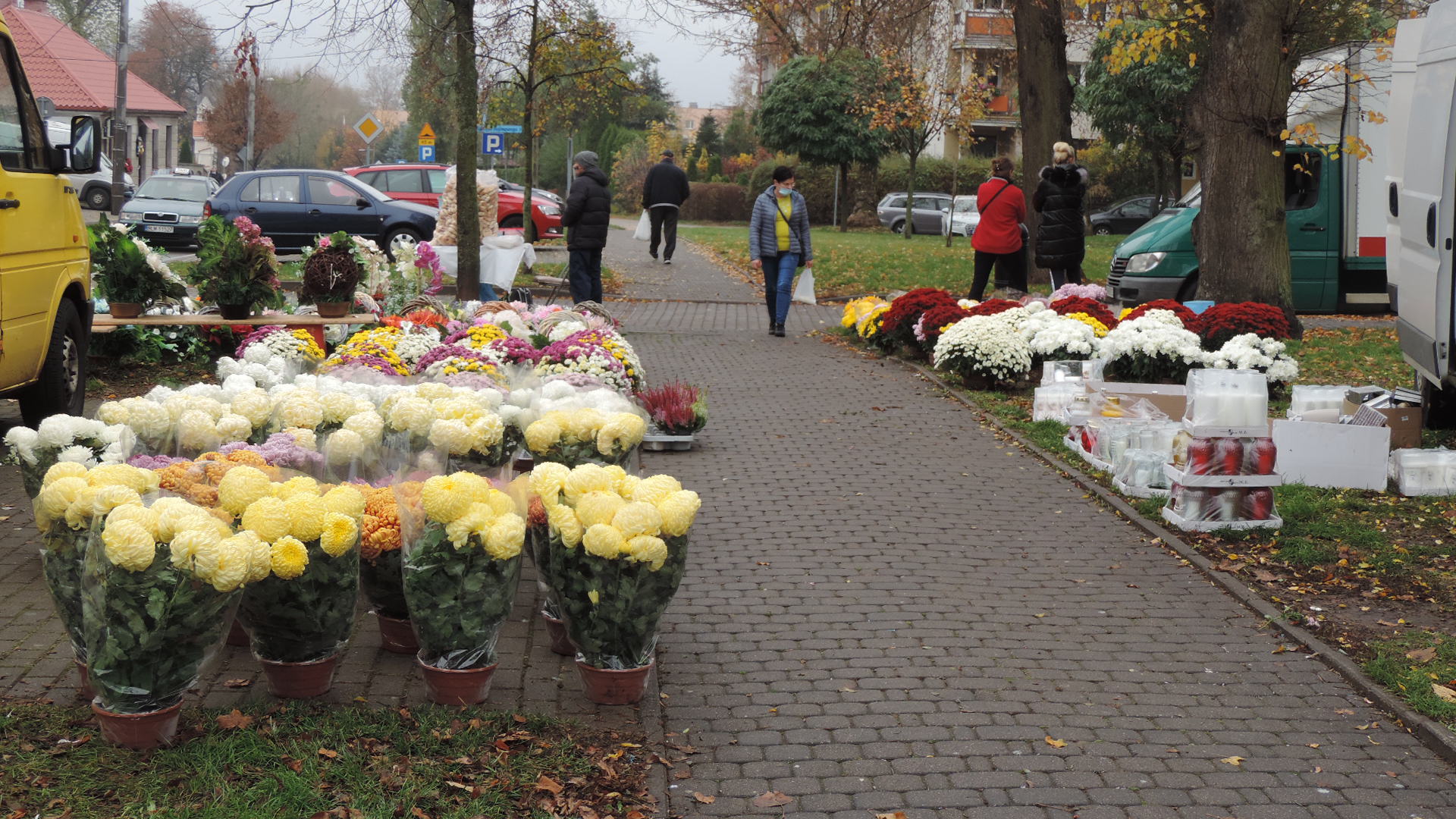 Także nieliczni sprzedawcy chryzantem i zniczy zdecydowali się dziś na handel przed cmentarnymi bramami.