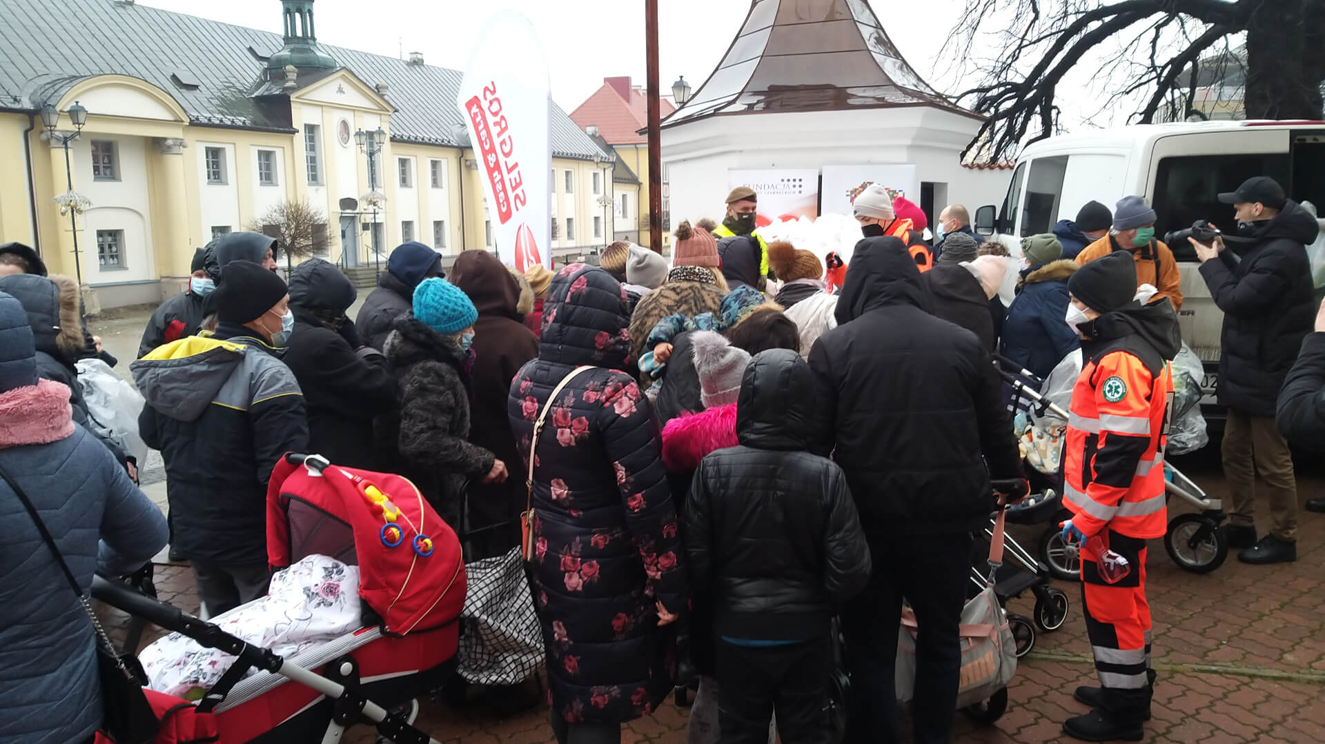 Organizatorzy przygotowali ok. 600 paczek dla potrzebujących. Mimo deszczu, potrzebujący stali w długiej kolejce, pierwsze osoby ustawiły się w niej niespełna dwie godziny przed rozpoczęciem wydawania paczek.