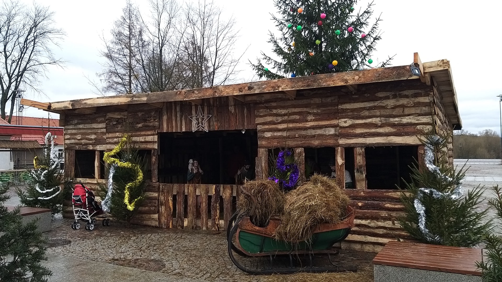 W środku są m.in. żywe zwierzęta i figury Świętej Rodziny. Dużą, drewnianą szopkę bożonarodzeniową ustawiono na rynku w Supraślu.