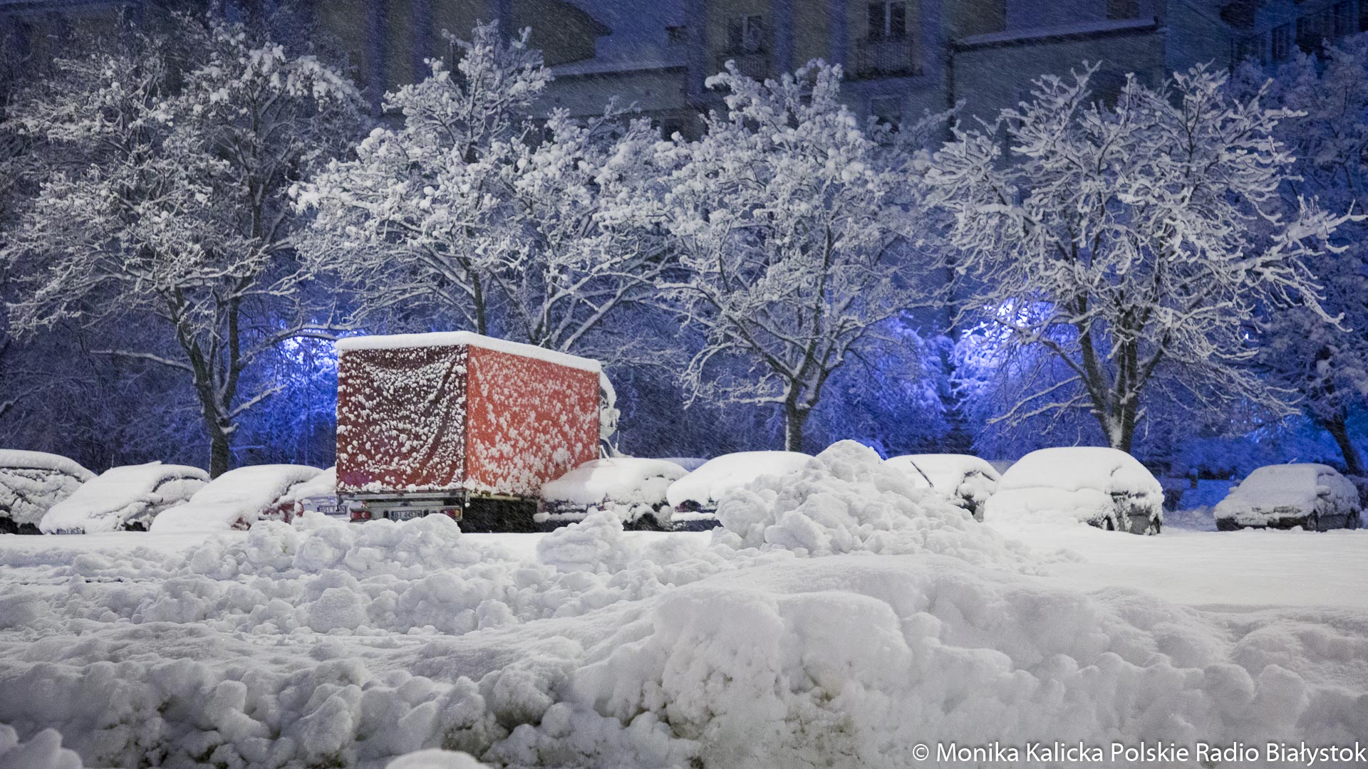 Mateusz Zamajtys z Biura Prognoz IMGW poinformował, że w ciągu ostatniej doby w Białymstoku spadło 25 cm śniegu, w Suwałkach 19 cm. Pokrywa śnieżna w Białymstoku wynosi obecnie 35 cm, w Suwałkach 26 cm. W nowych komunikatach z ostrzeżeniami przed utrzymującymi się opadami śniegu jest mowa, że może spaść kolejnych 10-15 cm śniegu.