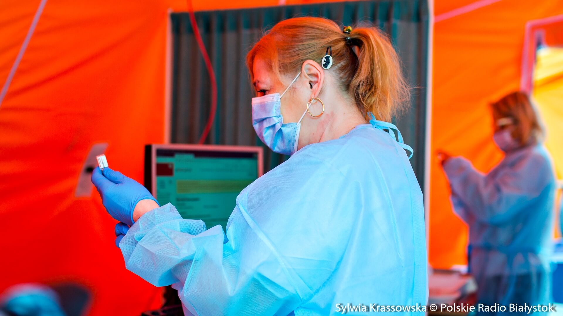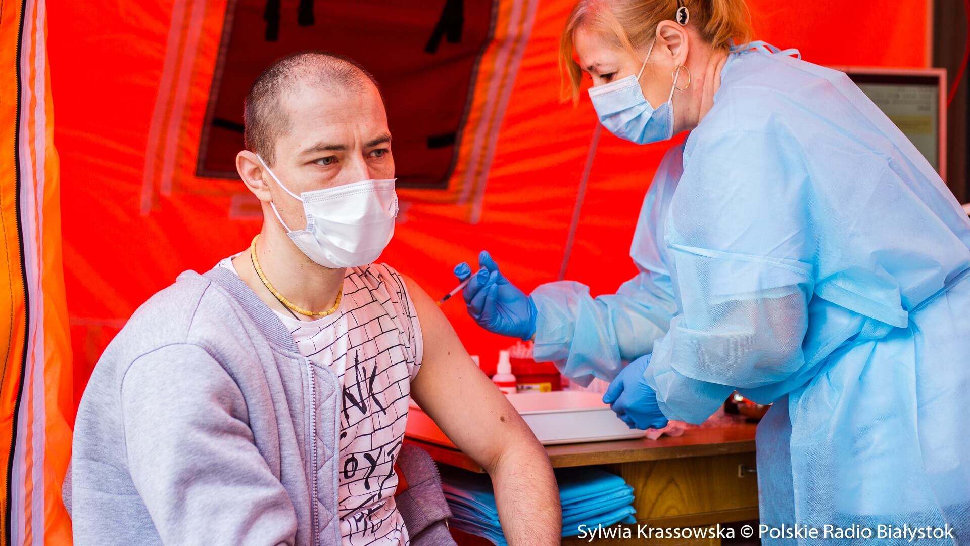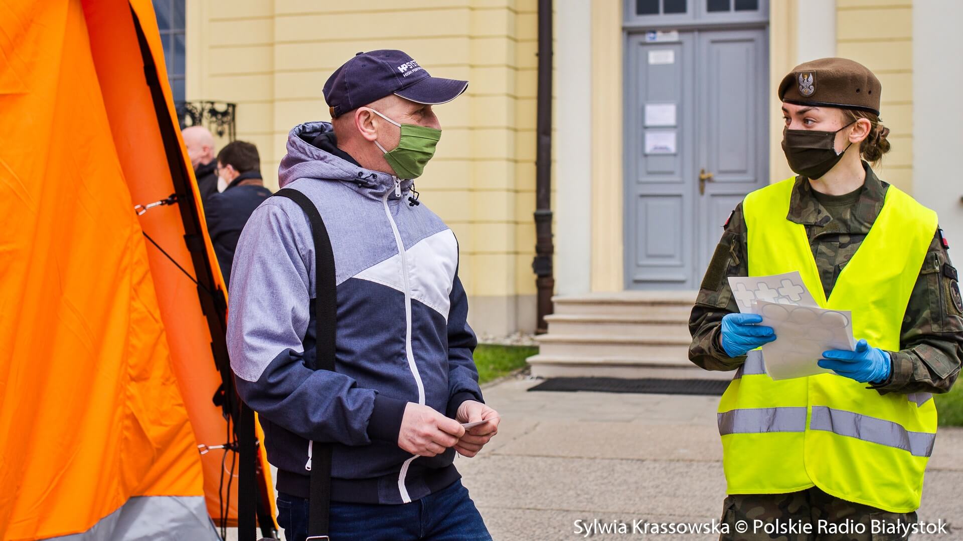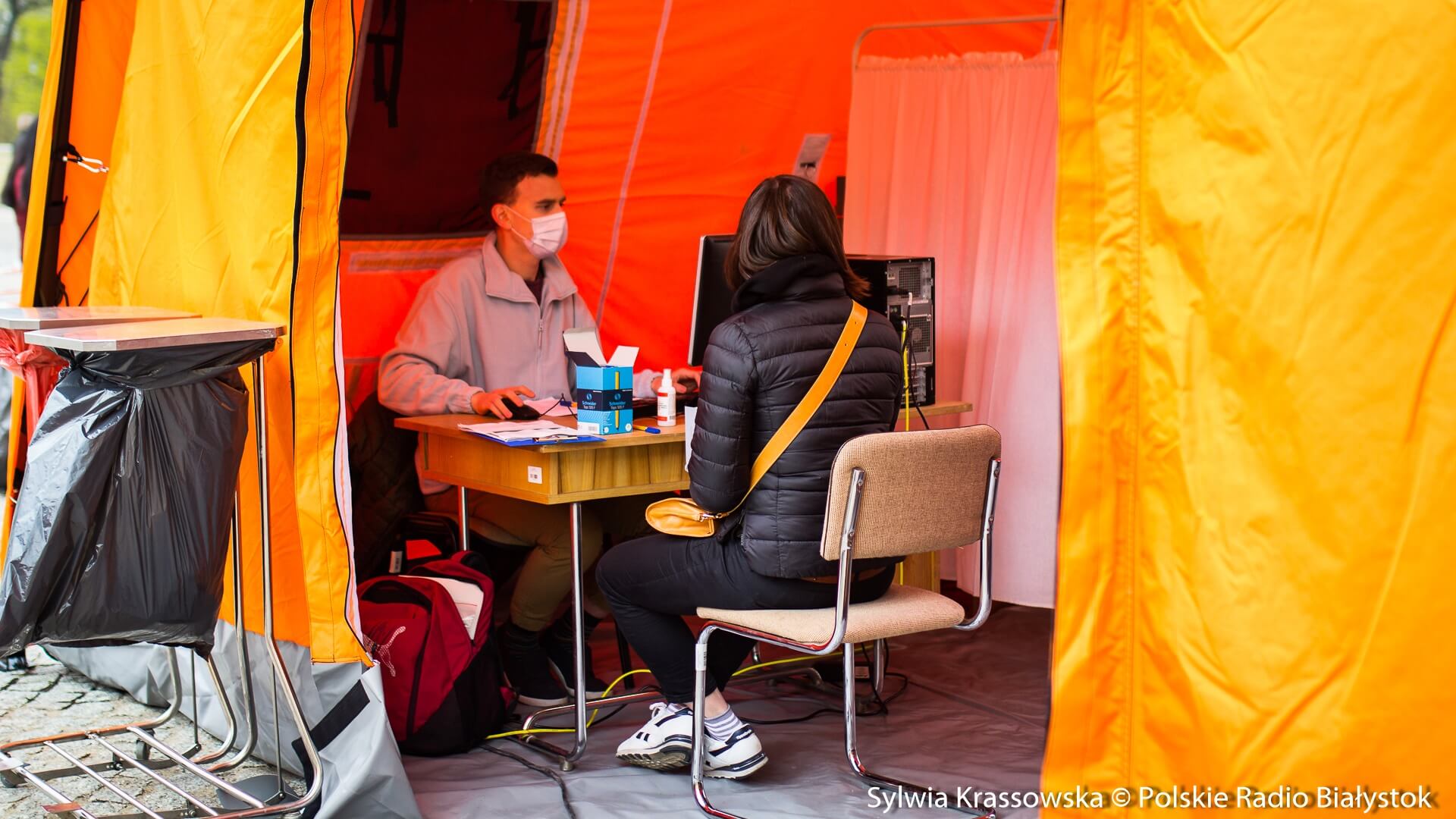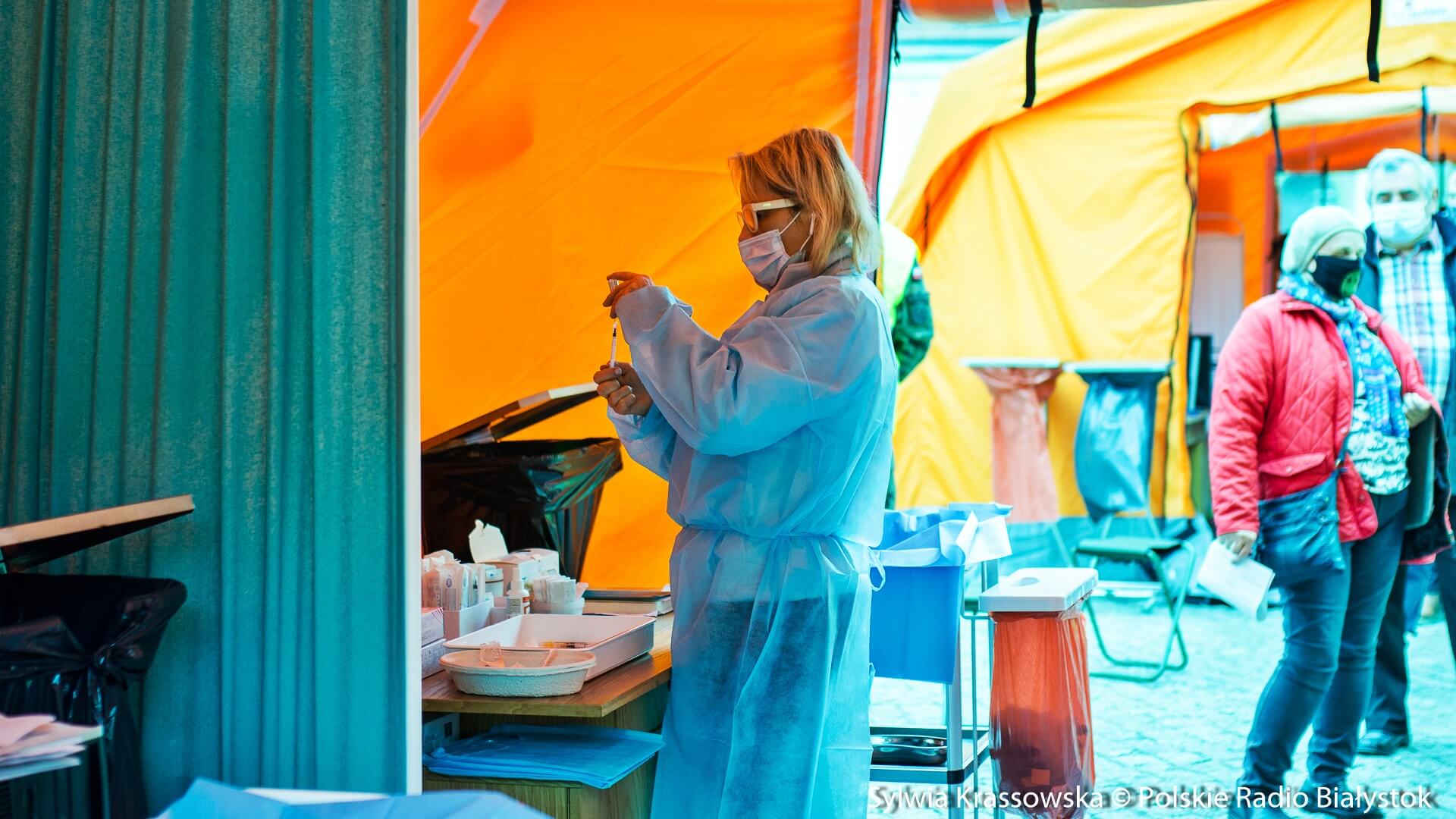Kolejka chętnych w punkcie zlokalizowanym na dziedzińcu Pałacu Branickich w Białymstoku ustawiła się jeszcze przed godz. 10:00, dlatego pierwsze szczepienia rozpoczęto nieco wcześniej, niż planowano. W sumie pracują tam trzy zespoły (lekarz plus pielęgniarka) i rejestratorka, medykom z Uniwersyteckiego Szpitala Klinicznego (USK) w Białymstoku pomagają żołnierze WOT.
