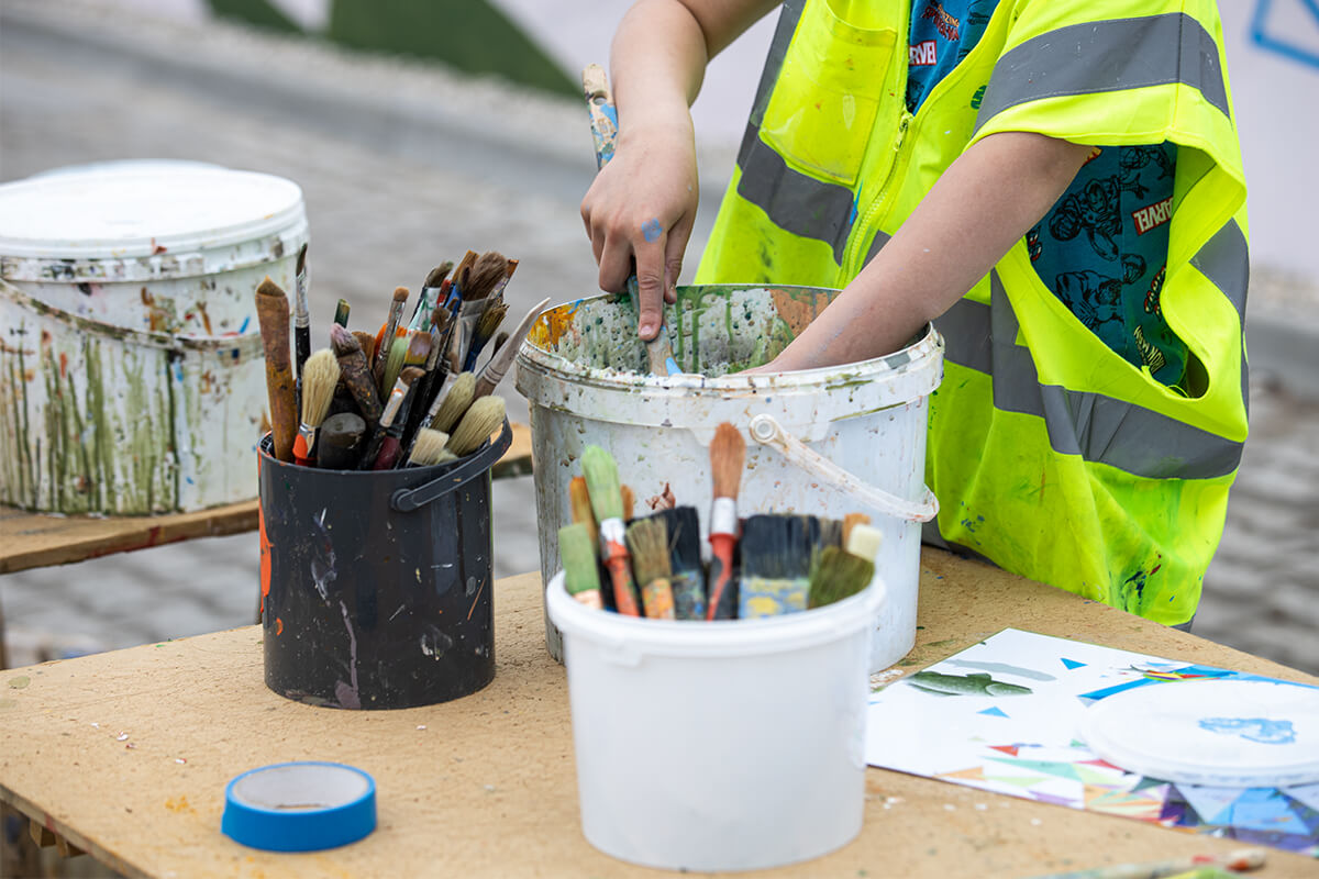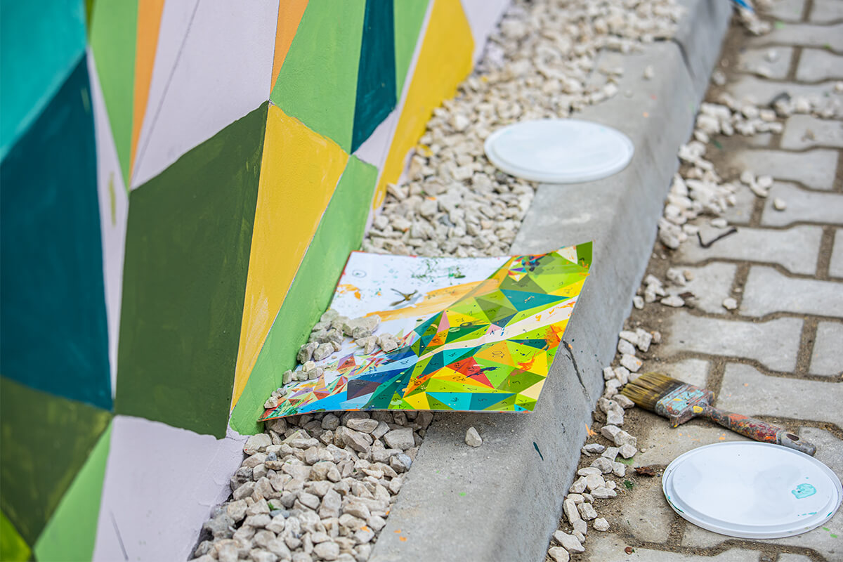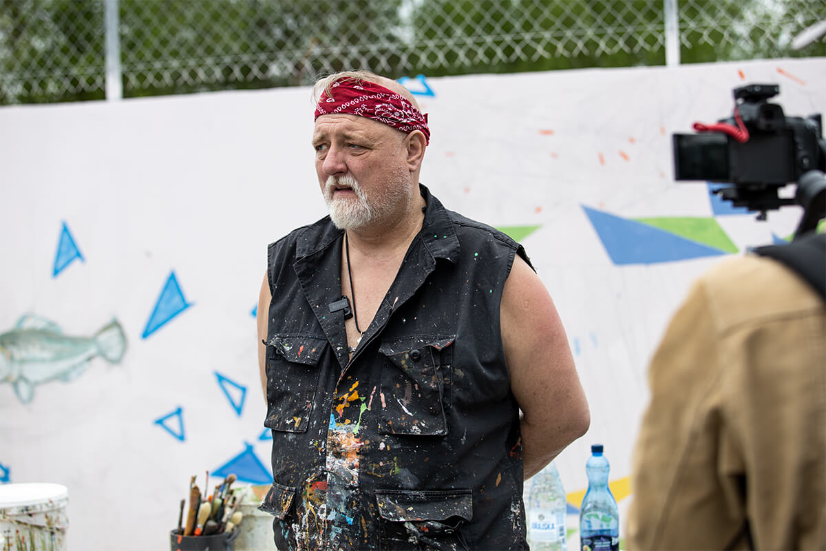 Prace studentów obserwuje i nadzoruje jeden z najsłynniejszych polskich muralistów dr Rafał Roskowiński, twórca Gdańskiej Szkoły Muralu.