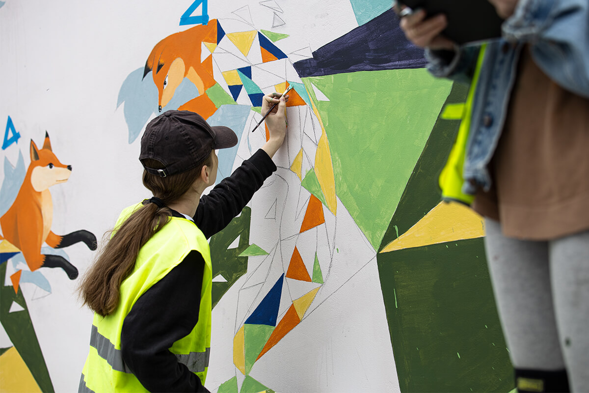 Radio Białystok | Wiadomości | Wiadomości - Sztuka w parku przemysłowym - studenci malują mural w Fastach [zdjęcia]