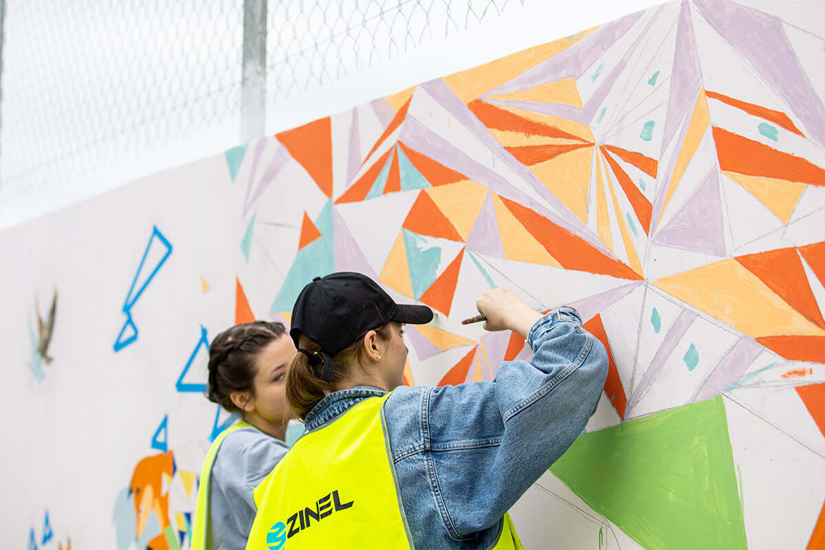 Mural zaprojektowany przez Kamilę Kurczab na ścianę muru przenoszą studenci Wydziału Architektury Politechniki Białostockiej. "Barwna przyszłość dla wszystkich" ma 30 metrów długości. To 70 metrów kwadratowych street artu.