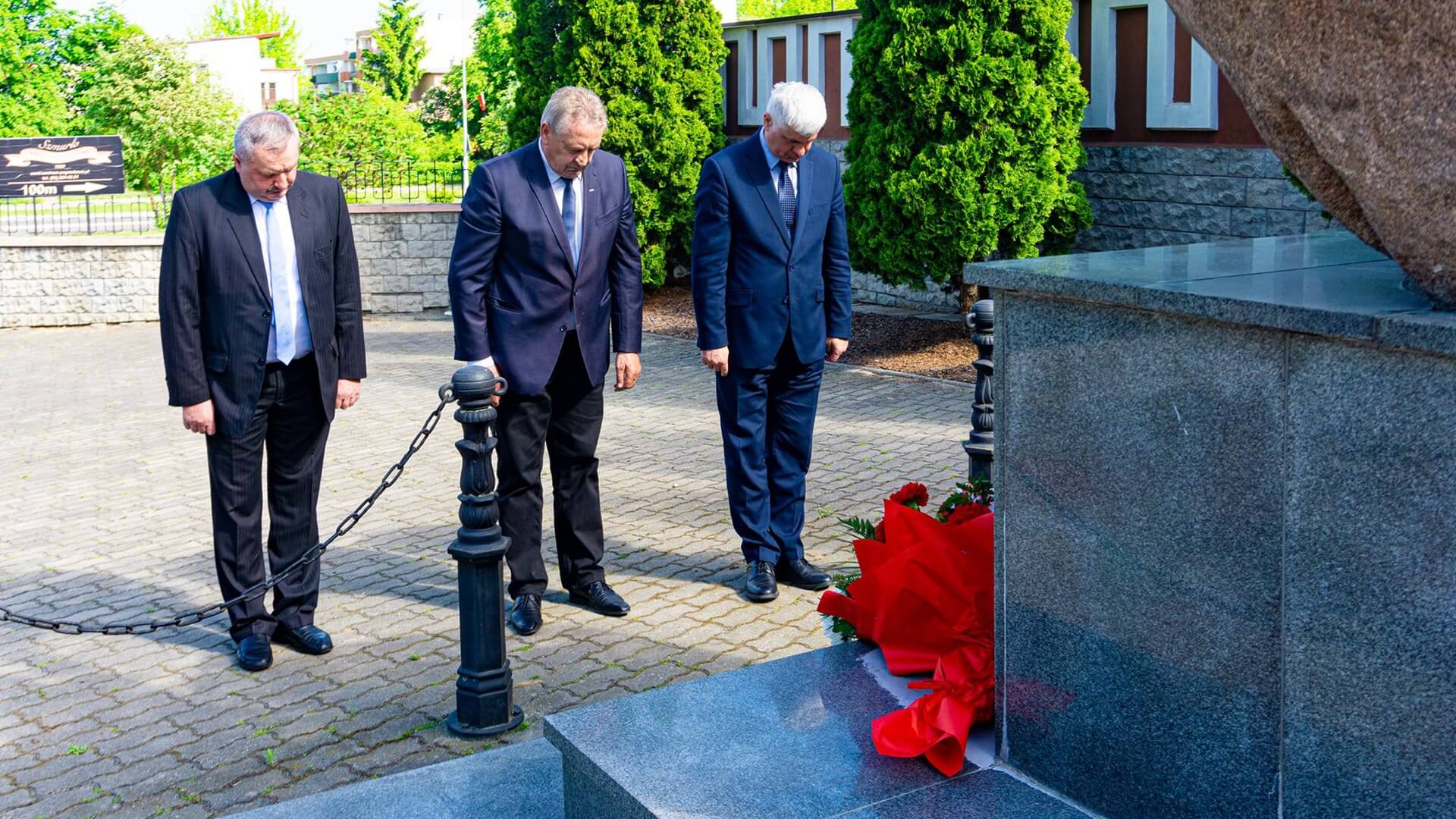 Władze Łomży złożyły kwiaty przed pamiątkową tablicą