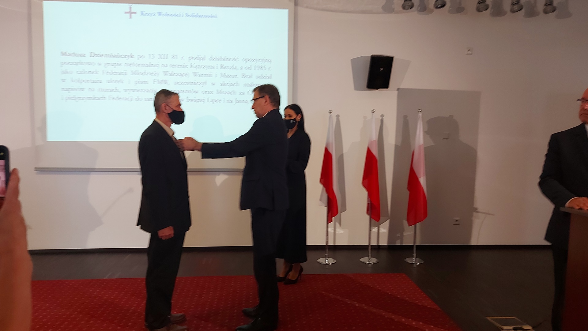 W imieniu prezydenta RP - Andrzeja Dudy wręczał je prezes IPN - dr Jarosław szarek, który mówił m.in.: "o wolność jest zawsze warto walczyć, mimo że czasami płaci się wysoką cenę, a ci wszyscy odznaczeni musieli wybrać między dobrem a złem, ale stanęli po dobrej stronie".