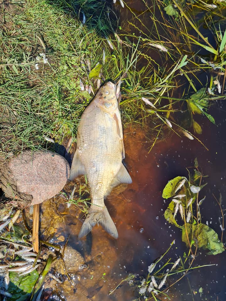 Radio Białystok | Wiadomości | Wiadomości - Bardzo wysoka temperatura, ulewne deszcze i spływająca woda z pól - to przyczyny śnięcia ryb w rzece Supraśl [zdjęcia]