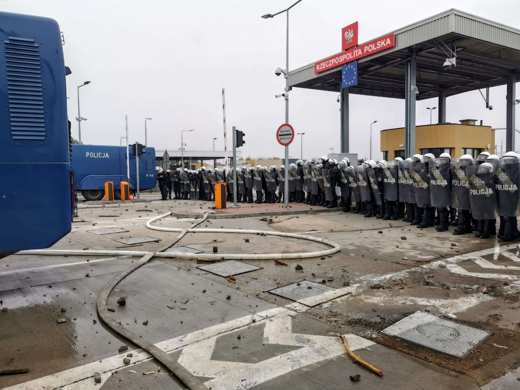 Jak relacjonował wcześniej rzecznik podlaskiej policji Tomasz Krupa, w stronę polskich policjantów rzucane były m.in. kamienie. Policja używała armatek wodnych m.in wobec agresywnych osób na platformie przejścia po stronie białoruskiej.