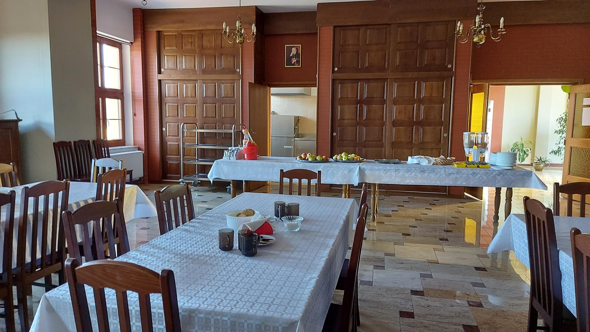 Posiłki uchodźcy wojenni mają w seminaryjnym refektarzu. W Wyższym Seminarium Duchownym uczą się języka polskiego, a lekcje prowadzi nauczycielka z Drohiczyna.