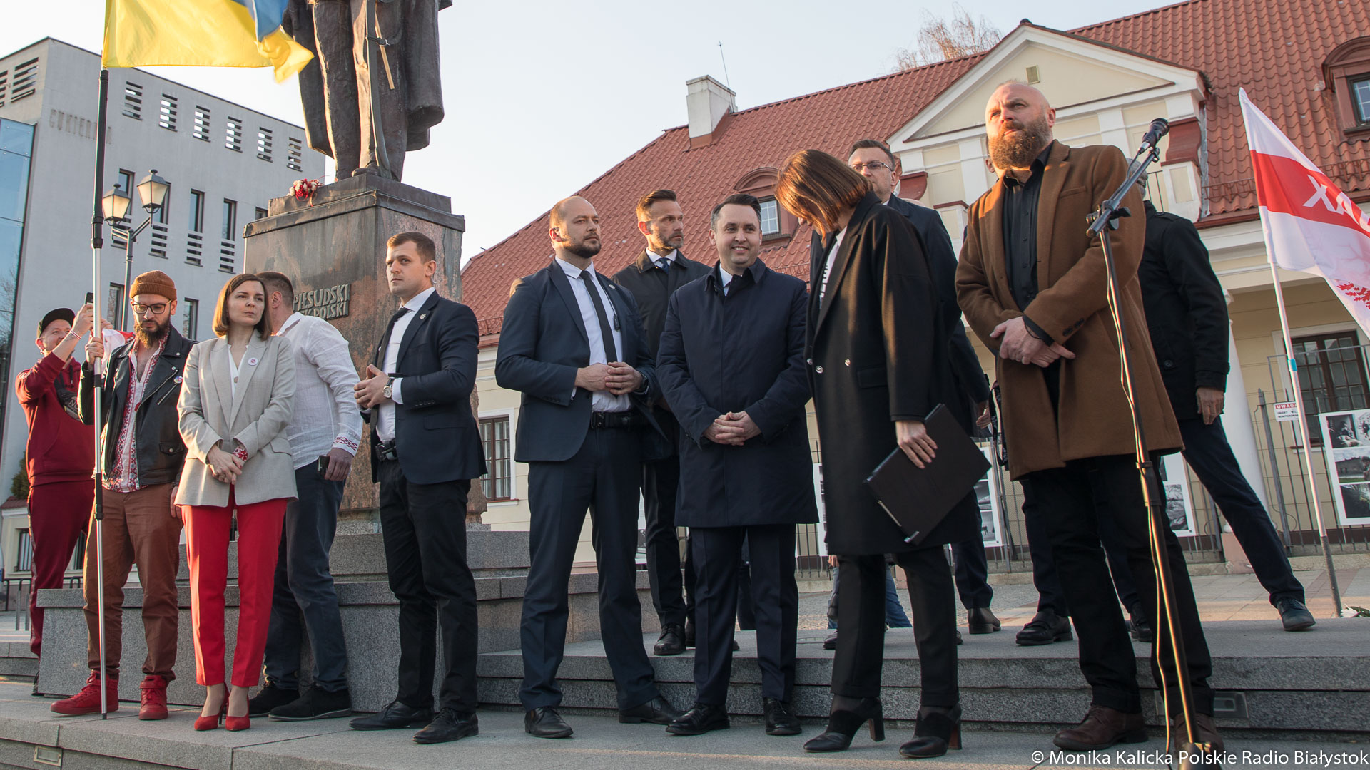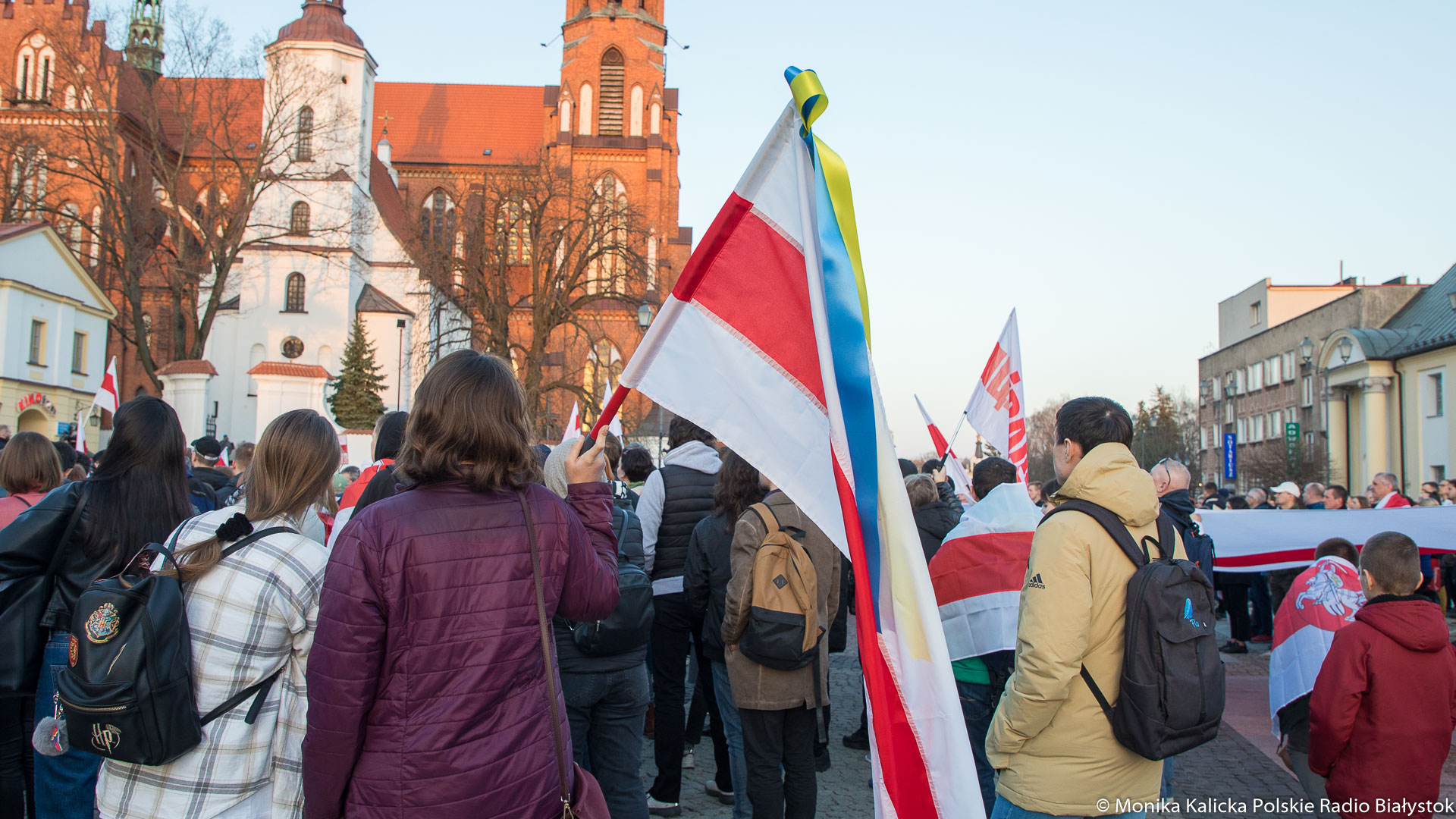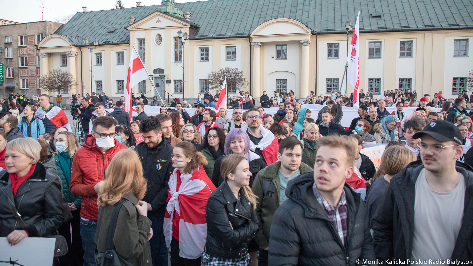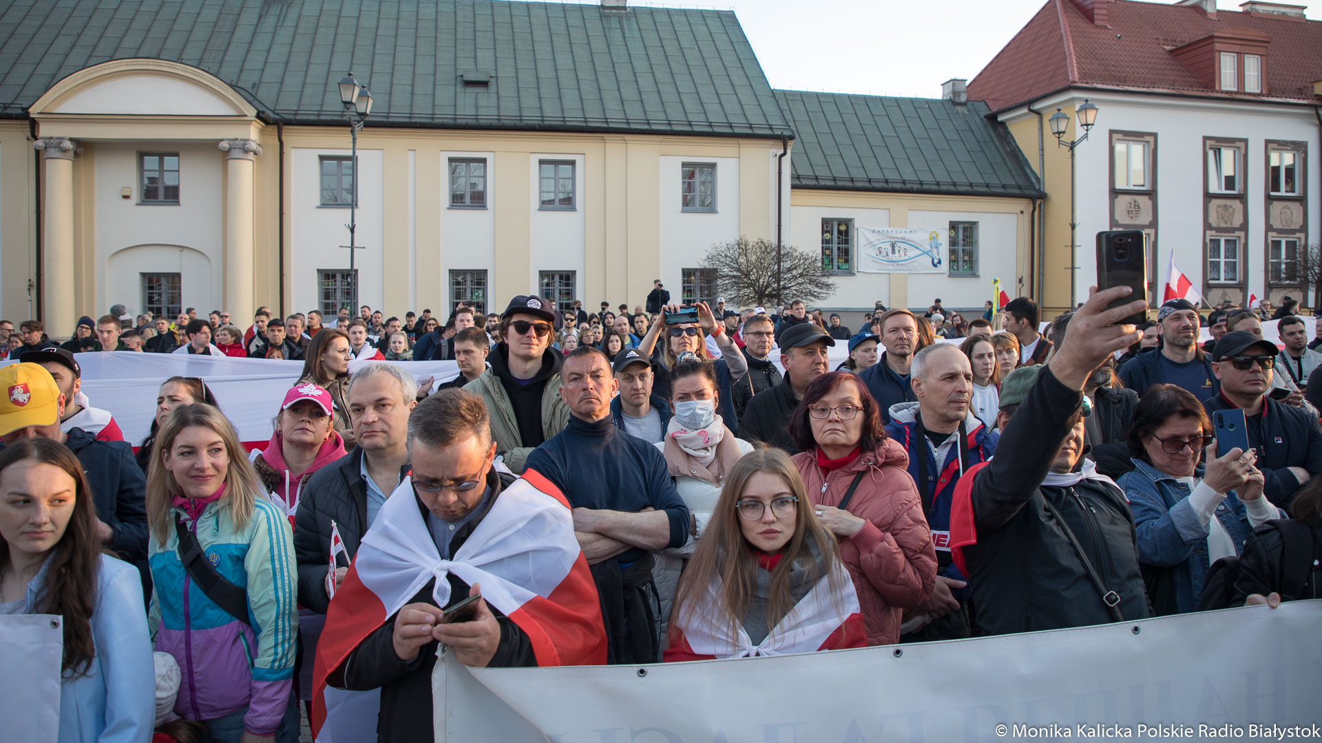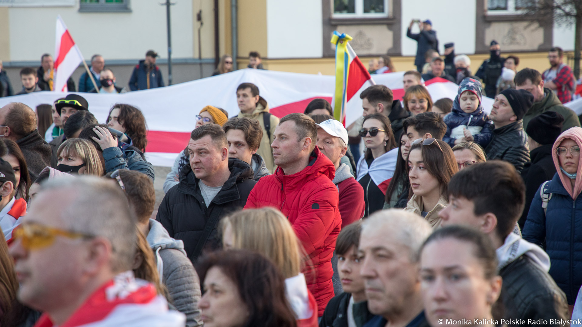 Na spotkaniu w Białymstoku skandowano wielokrotnie "Żywie Biełaruś", ale także "Sława Ukraini". Uczestnicy spotkania mieli biało-czerwono-białe flagi używane przez opozycję białoruską, były też flagi ukraińskie, transparenty "Wolność więźniom politycznym", "Nie wojnie". W manifestacji wzięli udział Białorusini, władze Białegostoku, politycy KO, władze miasta.