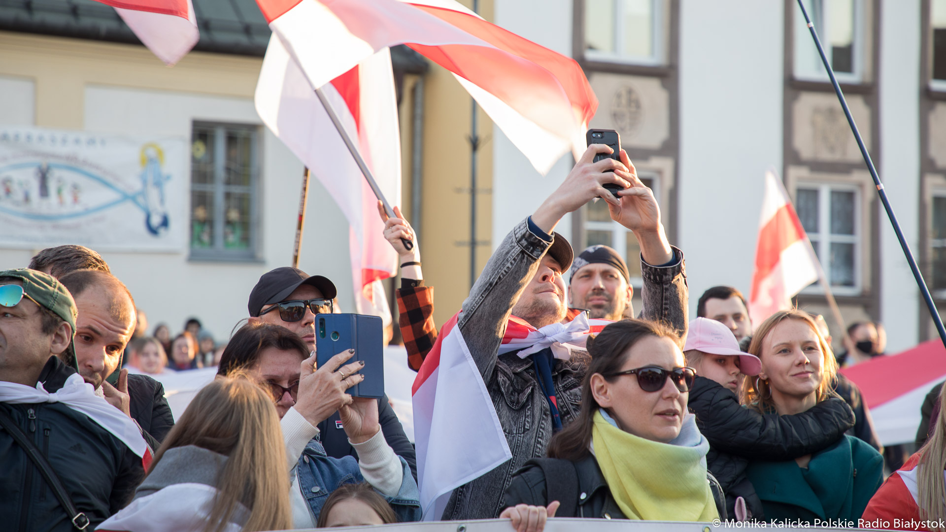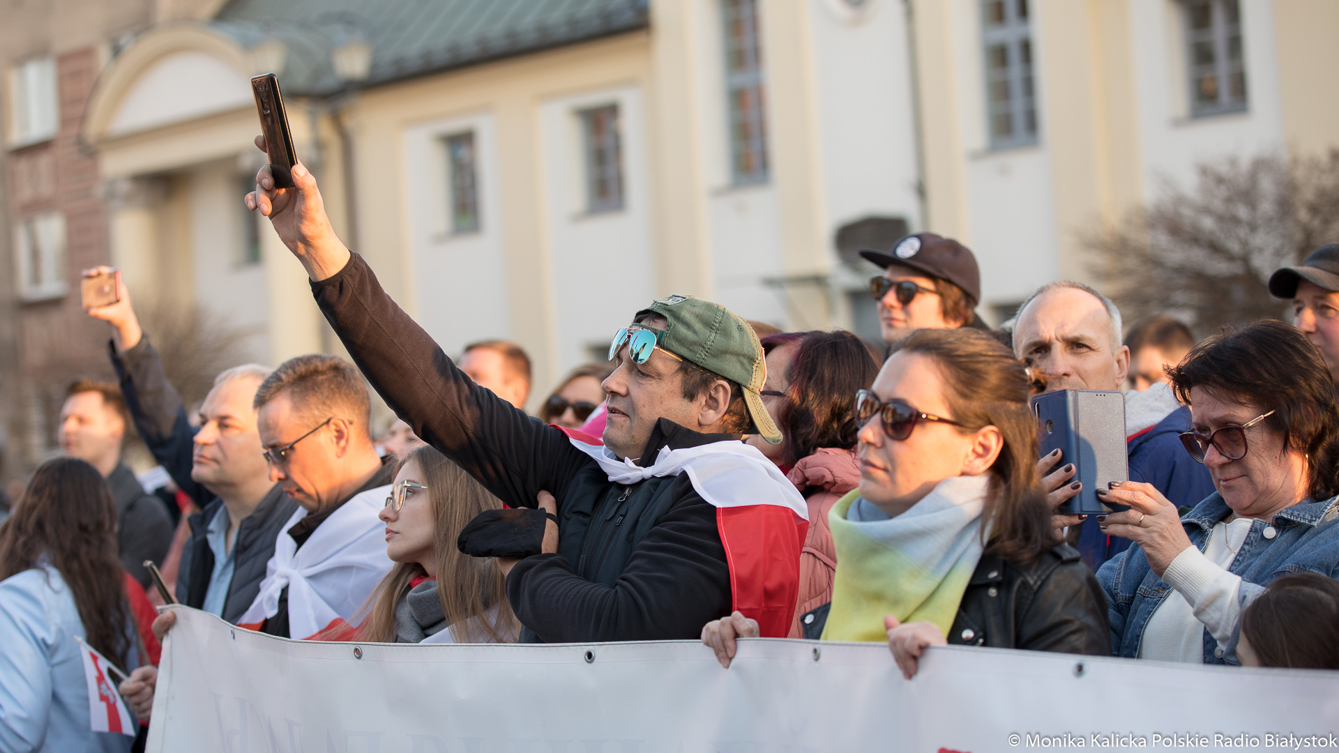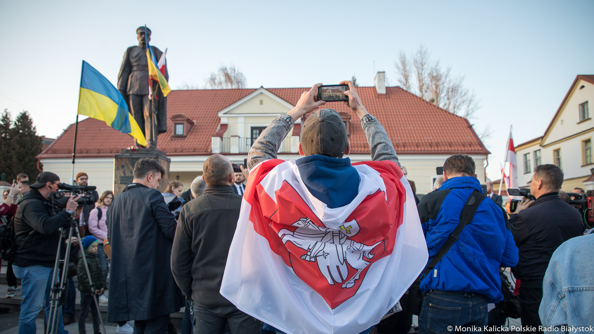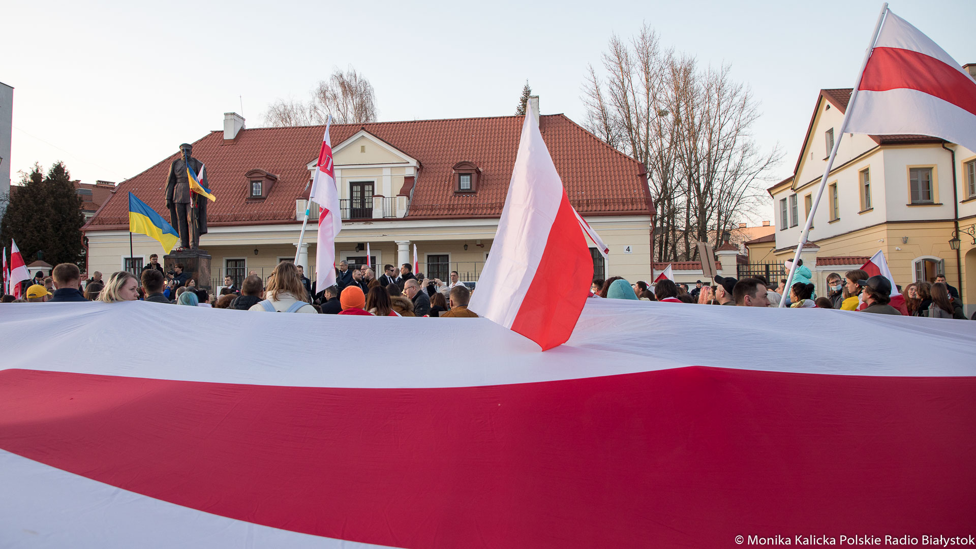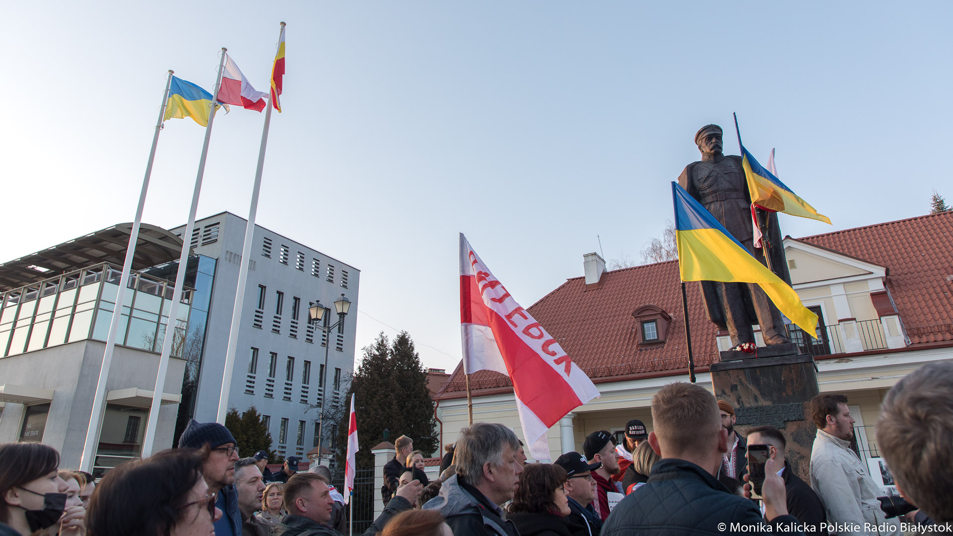 Na spotkaniu w Białymstoku skandowano wielokrotnie "Żywie Biełaruś", ale także "Sława Ukraini". Uczestnicy spotkania mieli biało-czerwono-białe flagi używane przez opozycję białoruską, były też flagi ukraińskie, transparenty "Wolność więźniom politycznym", "Nie wojnie". W manifestacji wzięli udział Białorusini, władze Białegostoku, politycy KO, władze miasta.