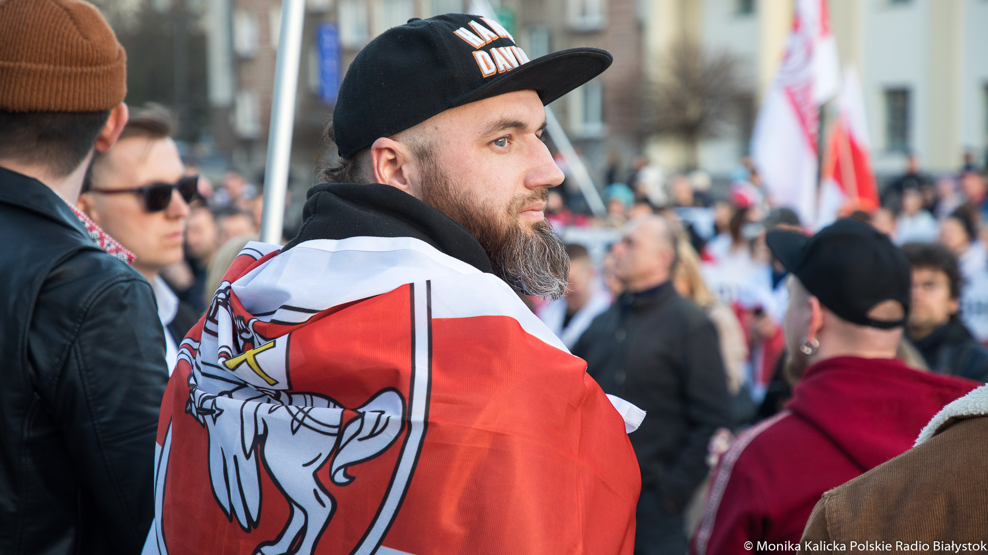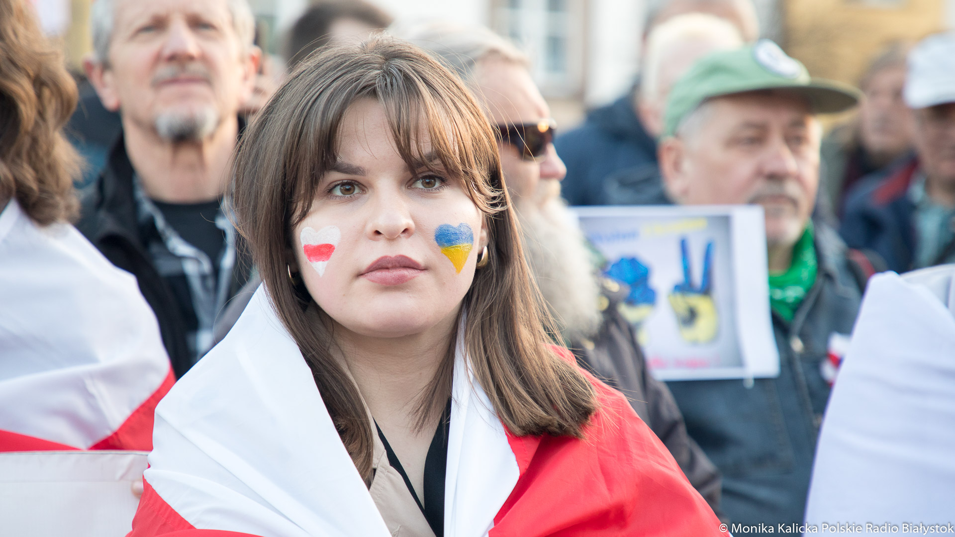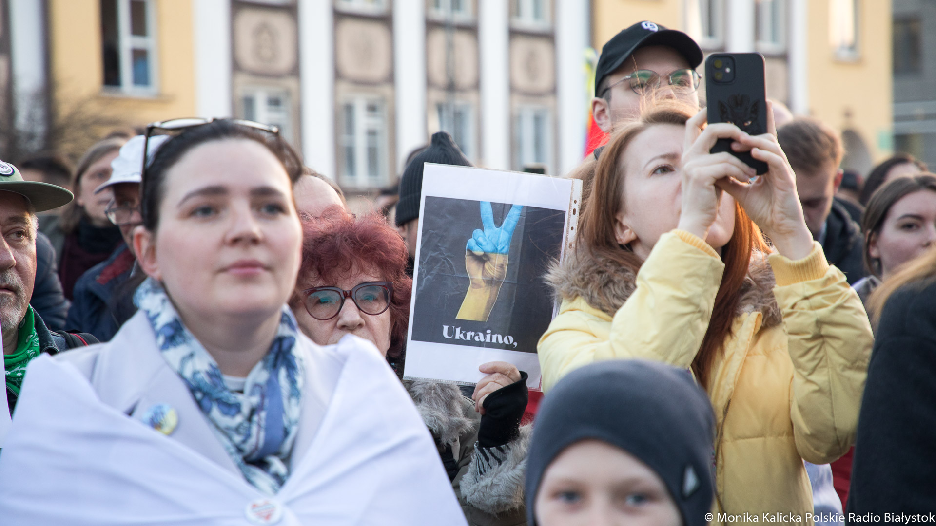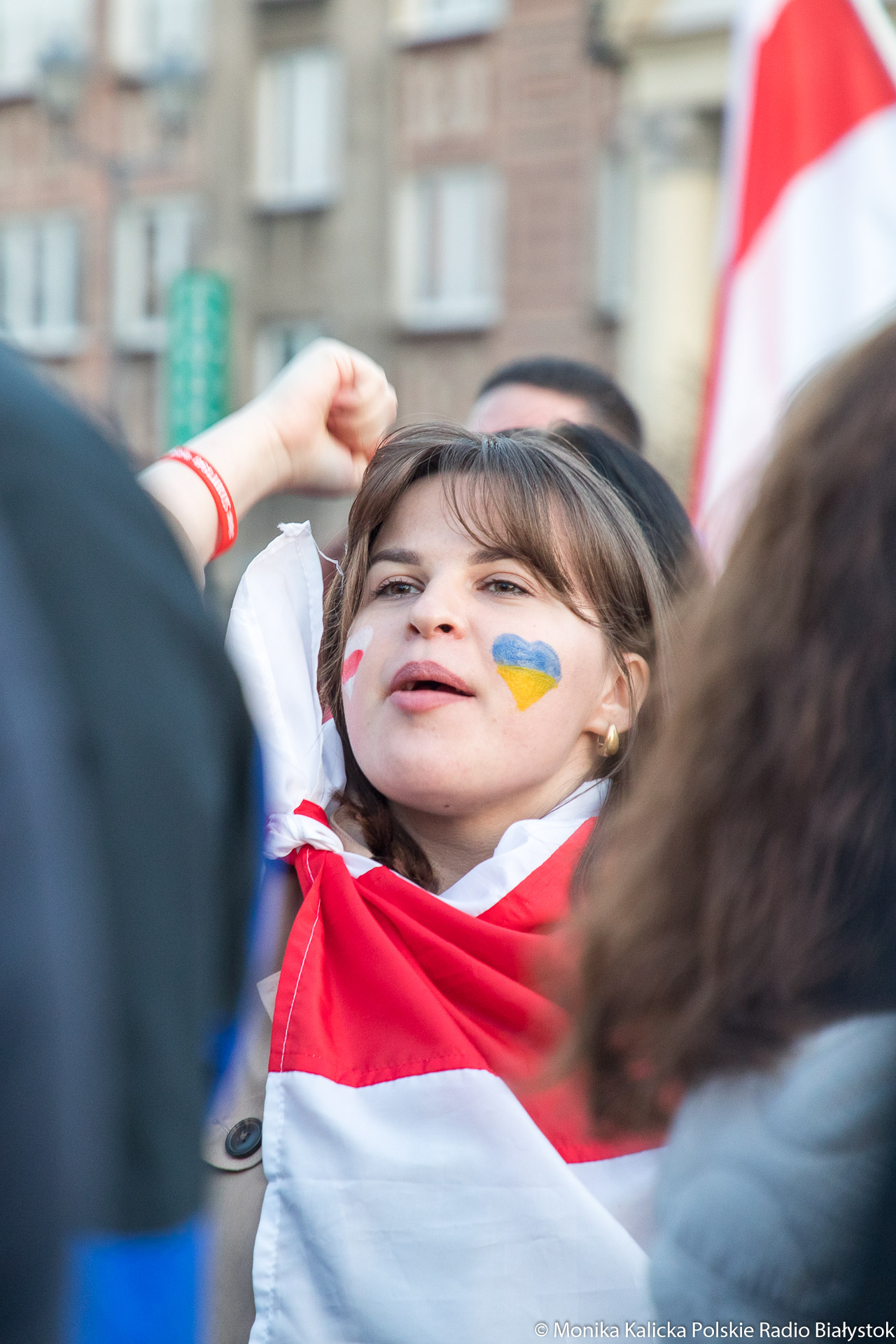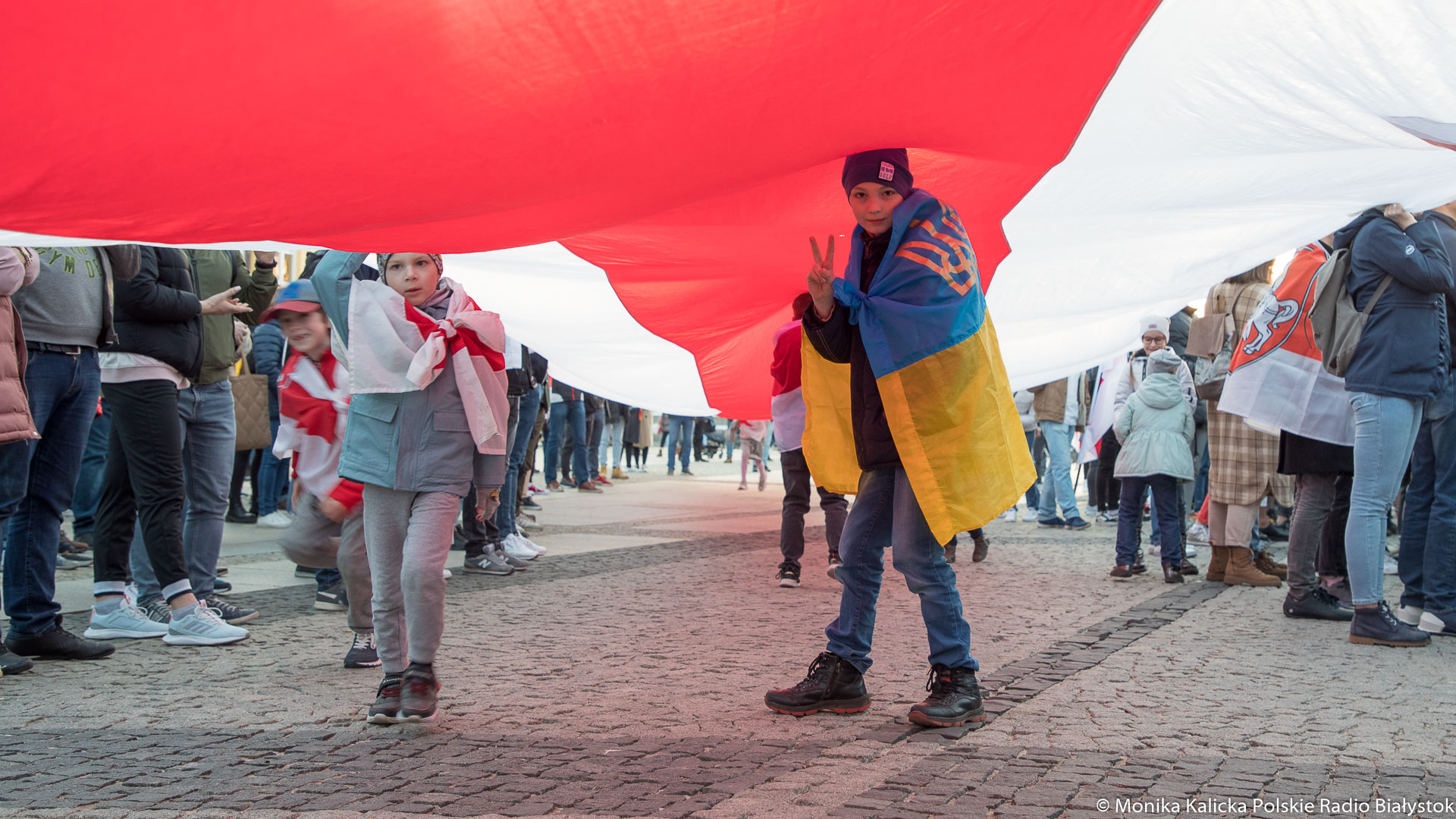 Na spotkaniu w Białymstoku skandowano wielokrotnie "Żywie Biełaruś", ale także "Sława Ukraini". Uczestnicy spotkania mieli biało-czerwono-białe flagi używane przez opozycję białoruską, były też flagi ukraińskie, transparenty "Wolność więźniom politycznym", "Nie wojnie". W manifestacji wzięli udział Białorusini, władze Białegostoku, politycy KO, władze miasta.