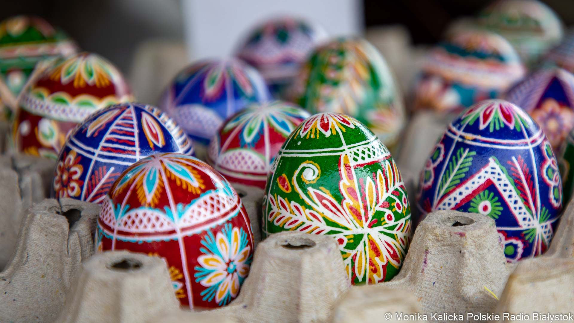 Na razie największym zainteresowaniem cieszą się właśnie ozdoby - zarówno drewniane, zdobione jajka, jak i pisanki malowane tradycyjnymi metodami.